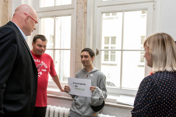 Wicemarszałek Michał Gramatyka włączył się w akcję #normalniesiePRACUJE. Inicjatywa została podjęta przez Centrum Doradztwa Zawodowego i Wspierania Osób z Niepełnosprawnością Intelektualną (Centrum DZWONI) w Bytomiu działające w ramach Polskiego Stowarzyszenia na Rzecz Osób z Niepełnosprawnością Intelektualną.