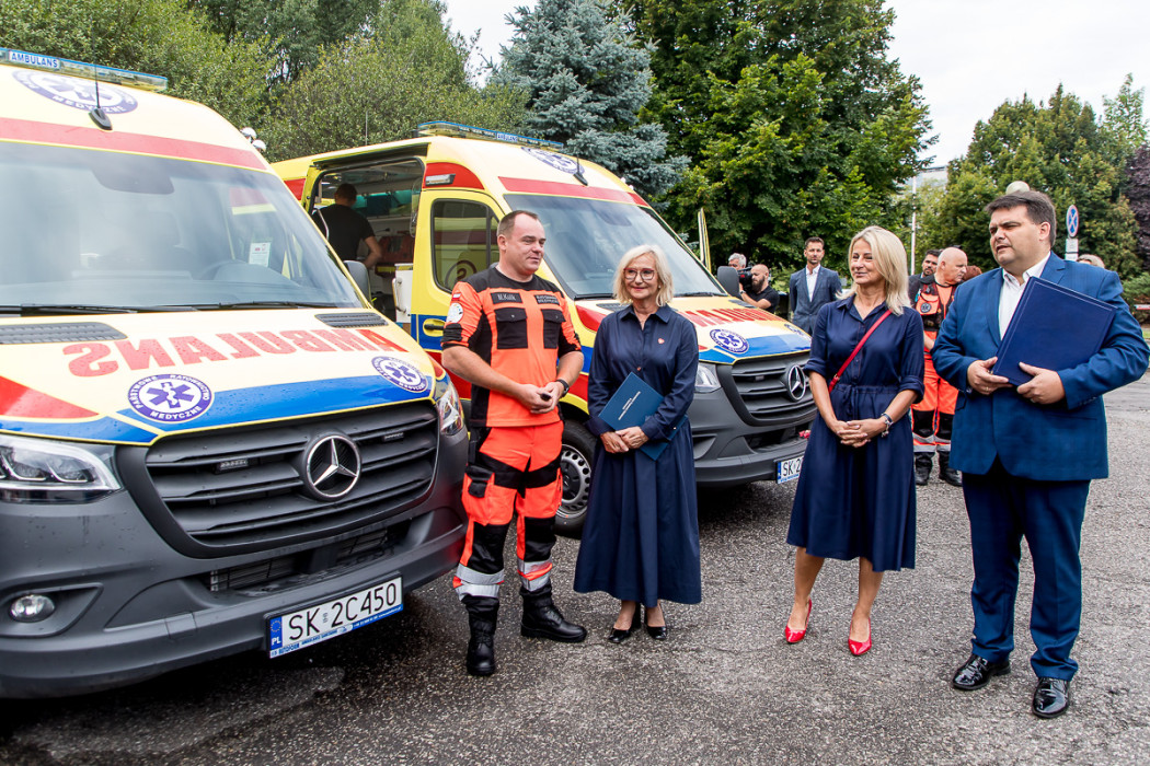 W uroczystym przekazaniu ambulansów, które trafią do Knurowa, Rybnika i gminy Tworóg, uczestniczyli m.in. przewodnicząca Komisji Polityki Społecznej i Ochrony Zdrowia Sejmiku Województwa Śląskiego Aleksandra Poloczek, dyrektor WPR w Katowicach Łukasz Pach, posłanki Katarzyna Stachowicz i Urszula Koszutska oraz wojewoda śląski Marek Wójcik.