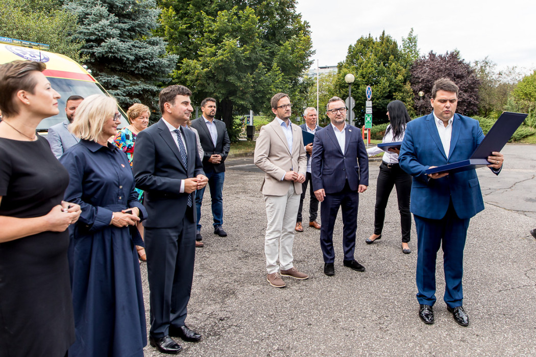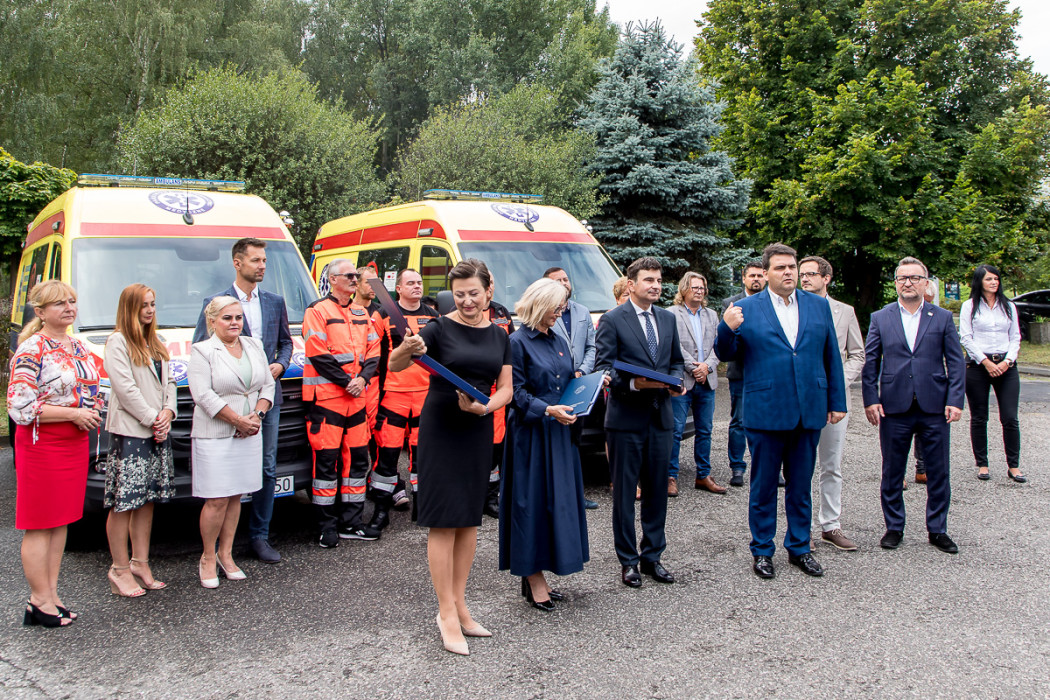 W uroczystym przekazaniu ambulansów, które trafią do Knurowa, Rybnika i gminy Tworóg, uczestniczyli m.in. przewodnicząca Komisji Polityki Społecznej i Ochrony Zdrowia Sejmiku Województwa Śląskiego Aleksandra Poloczek, dyrektor WPR w Katowicach Łukasz Pach, posłanki Katarzyna Stachowicz i Urszula Koszutska oraz wojewoda śląski Marek Wójcik.