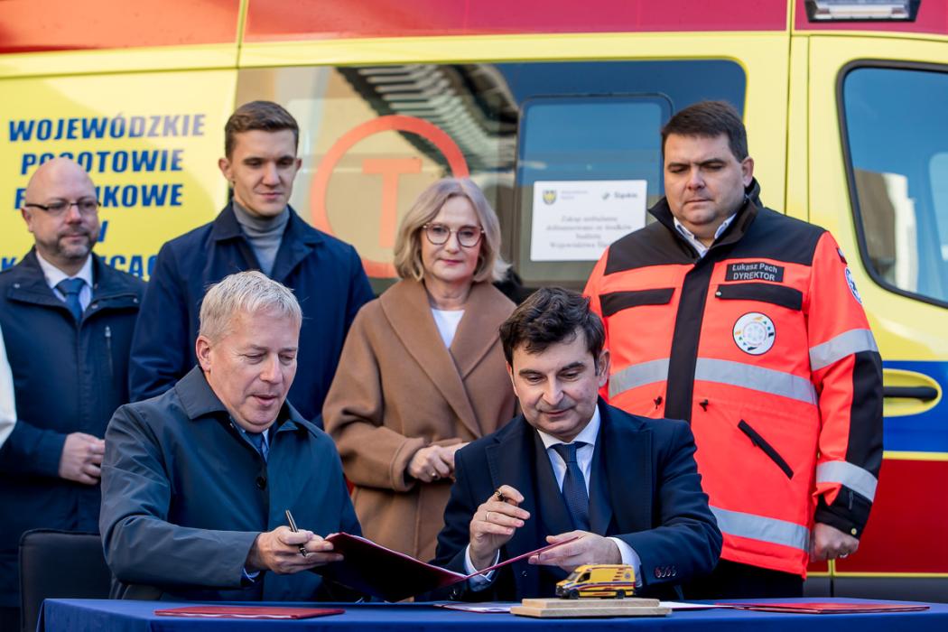 W ramach podpisanych dziś umów do Wojewódzkiego Pogotowia Ratunkowego w Katowicach trafi dziesięć ambulansów, a do Rejonowego Pogotowia Ratunkowego w Sosnowcu kolejnych sześć. Łączna wartość wszystkich karetek to ponad 14 mln zł.