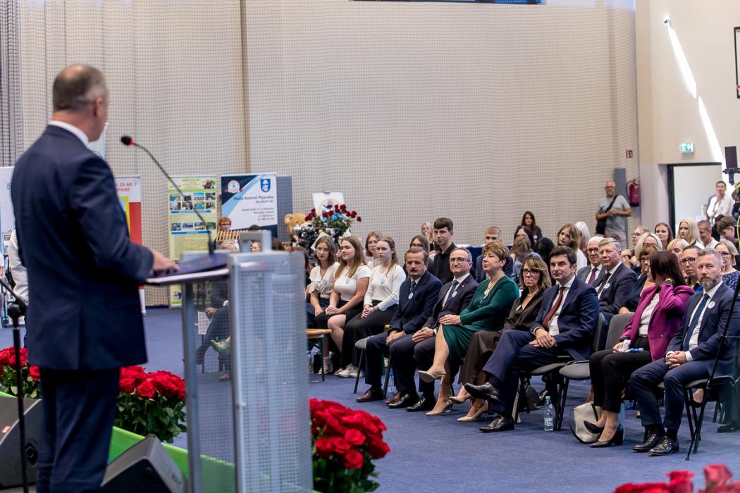- Postęp technologiczny wręcz będzie to na nas wymuszał, żyjemy bowiem w erze powszechnej cyfryzacji z coraz większym udziałem sztucznej inteligencji. Województwo Śląskie przywiązuję ogromną wagę do implementacji środków na kształcenie zawodowe. Wyprzedziliśmy inne regiony w realizacji projektów służących rozwojowi tego profilu szkolnictwa, czego przykładem jest przedsięwzięcie „Śląskie zawodowcy”, ukierunkowane właśnie na szkolnictwo zawodowe, współpracę z przedsiębiorcami i szkołami, by absolwentów już teraz przygotowywać do rynku pracy. Kształcenie zawodowe przez lata było pomijane, a obecnie widzimy, jak bardzo jest ono potrzebne. Życzę wszystkim uczniom, aby ten rok szkolny był dla nich wyjątkowy, obfitował w sukcesy, bo nie ukrywajmy, świetnie wykształcona młodzież posiadająca fachową wiedzę i umiejętności jest naszą wspólną przyszłością – podkreślił obecny na uroczystości wicemarszałek Województwa Śląskiego, Grzegorz Boski.