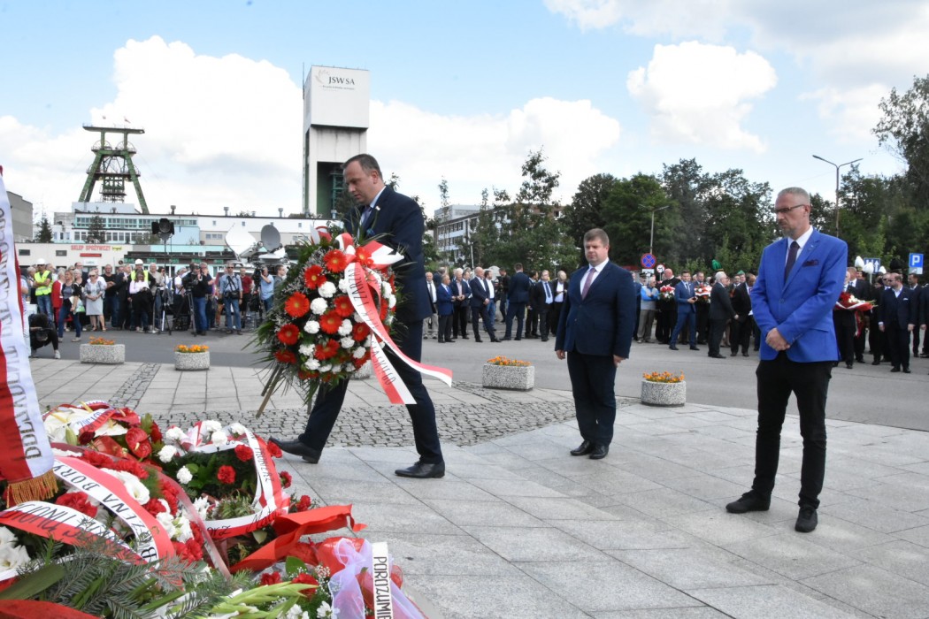 Na zakończenie uroczystości delegacje złożyły kwiaty pod pomnikiem Porozumienia Jastrzębskiego. W imieniu władz województwa wiązankę złożyli marszałek Jakub Chełstowski i wicemarszałek Wojciech Kałuża.