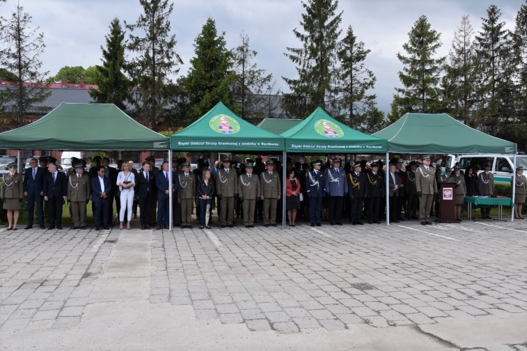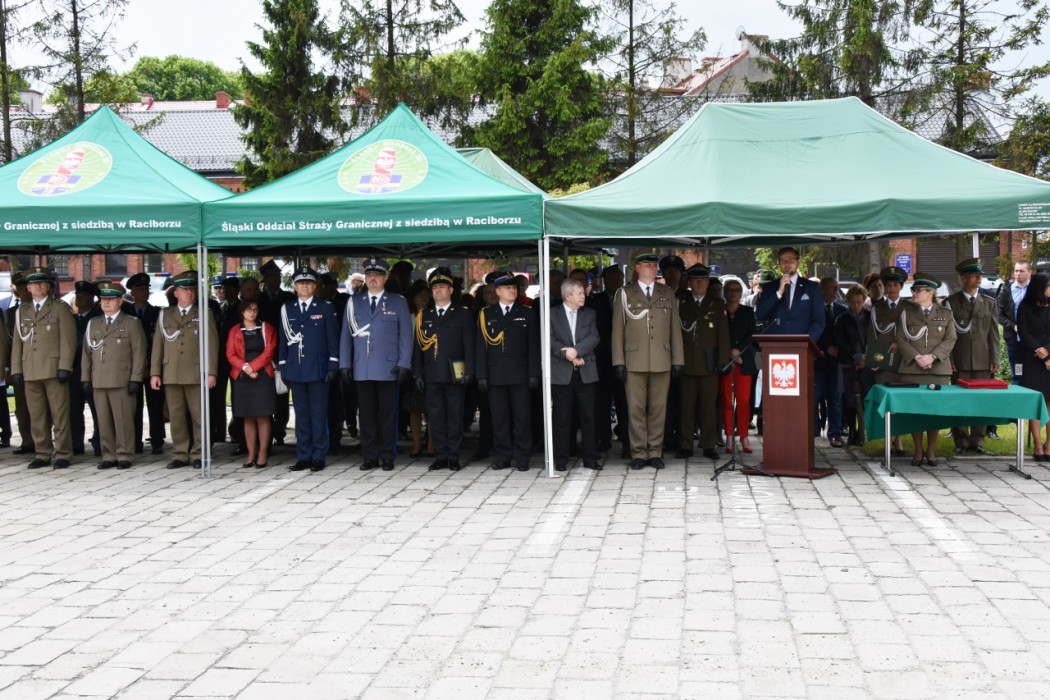 W głównych uroczystościach, które w tym roku odbyły się na terenie Komendy Śląskiego Oddziału Straży Granicznej w Raciborzu wzięli udział m.in. Zastępca Przewodniczącego Komisji Administracji i Spraw Wewnętrznych Poseł na Sejm RP Jerzy Polaczek, Wojewoda Opolski Adrian Czubak, Wicemarszałek Województwa Śląskiego Michał Woś, Wiceprezydent Miasta Racibórz Dominik Konieczny, parlamentarzyści, samorządowcy, przedstawiciele współdziałających służb mundurowych i instytucji z terenu województwa śląskiego i opolskiego, duchowieństwa, sądownictwa i prokuratury, dyplomaci oraz delegacje służb granicznych z Czech.