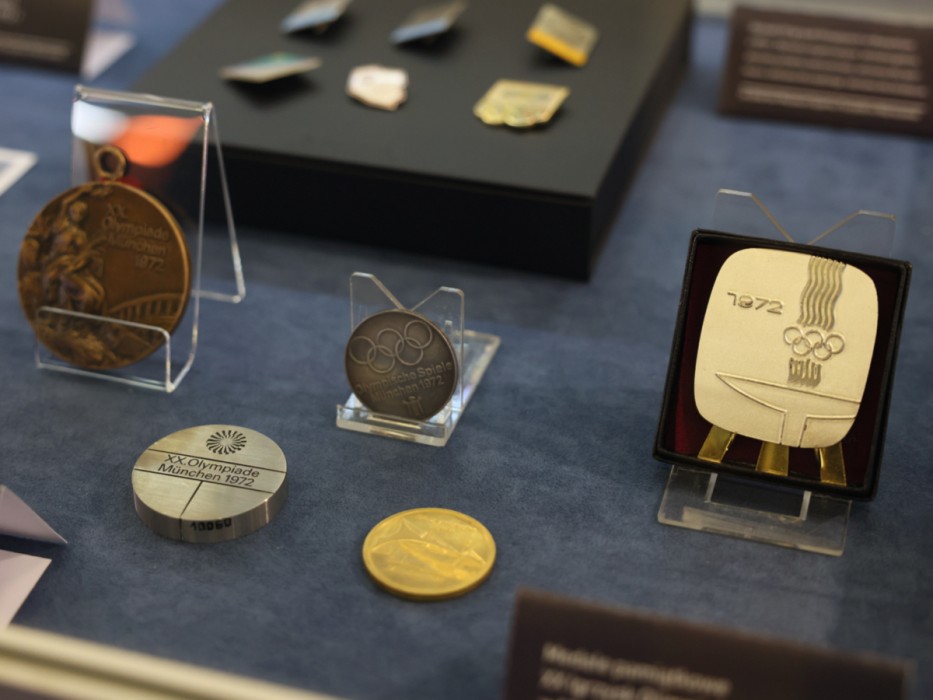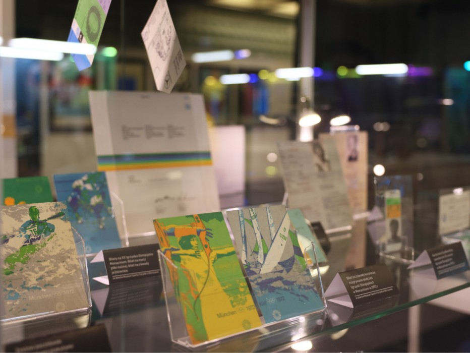 Na wystawie zobaczyć można 21 artystycznych plakatów promujących igrzyska olimpijskie w Monachium, maskotkę jamnika Waldiego, strój łuczniczki Ireny Szydłowskiej, krawaty, spinki do mankietów, medale pamiątkowe, odznaki i proporczyki. Ekspozycja powstała we współpracy z Muzeum Sportu i Turystyki w Warszawie.