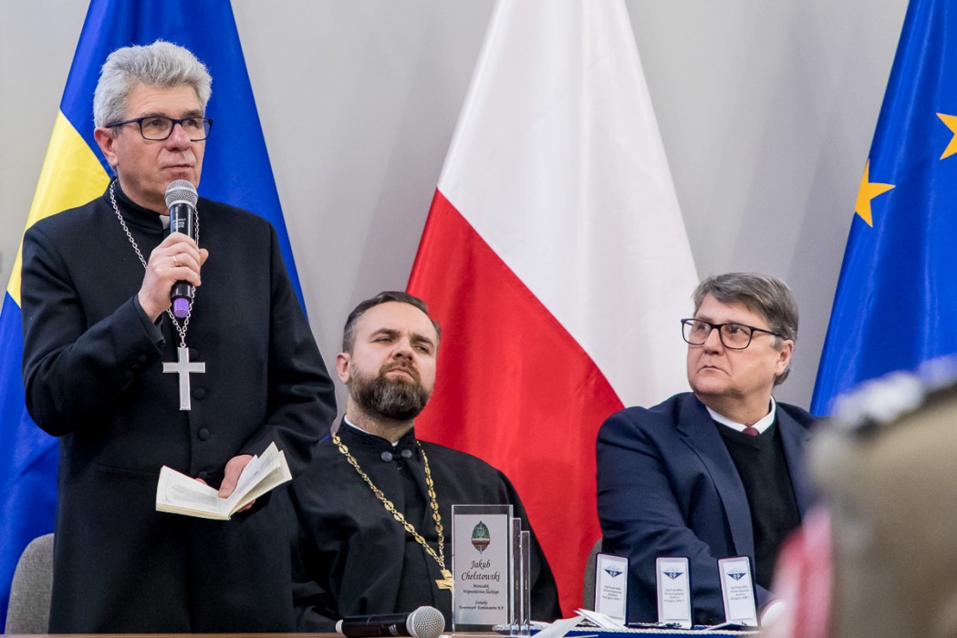 - Doroczne spotkanie opłatkowe ze środowiskiem kombatantów to okazja, ale przede wszystkim zaszczyt, aby podziękować za Waszą służbę. Za wszystko czego dokonaliście, byśmy mogli cieszyć się bezpieczeństwem, żyć w wolnym kraju. Chce również podziękować tym, którzy pełnią służbę dziś - Wojsku, Policji, Straży Granicznej i Państwowej Straży Pożarnej. Wasza służba to gwarancja naszego spokoju. Ma to znaczenie szczególnie dziś, gdy za wschodnią granicą trwa wojna. Bo trzeba też przyznać, że Ukraina walczy także o nasze bezpieczeństwo. Oby ta wojna wywołana przez Rosję jak najszybciej i w przyszłym roku mogliśmy się spotkać w warunkach pokoju w naszej części Europy – powiedział marszałek Jakub Chełstowski, który został uhonorowany statuetką przyznawaną przez stowarzyszenie skupiające środowiska kombatantów i więźniów politycznych.