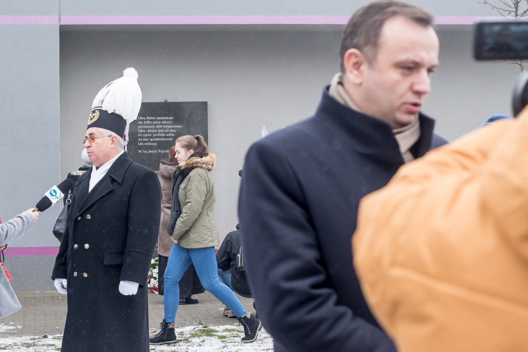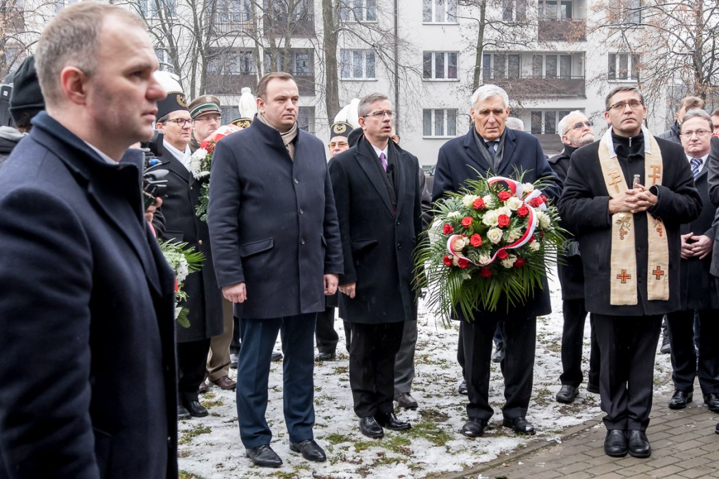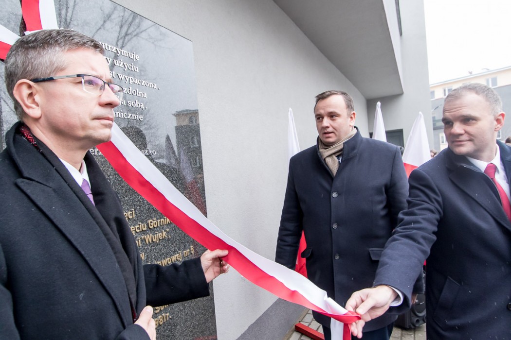 W odsłonięciu tablicy uczestniczył marszałek Jakub Chełstowski, wiceprezydent Katowic Waldemar Bojarun oraz dyrektor Śląskiego Centrum Wolności i Solidarności w Katowicach, Robert Ciupa.
