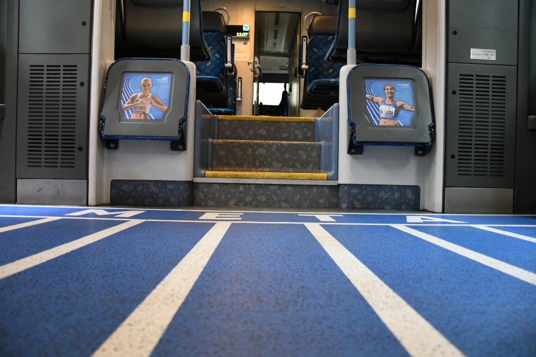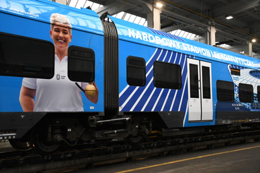 Pociąg z wizerunkami znakomitych polskich lekkoatletów wyjechał pierwszy raz w trasę. Ma kursować na wszystkich liniach obsługiwanych przez Koleje Śląskie