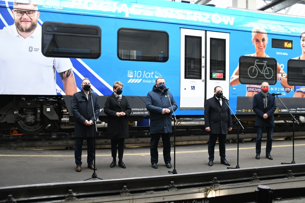 „Jestem przekonany, że za kilka miesięcy spotkamy się na Stadionie Śląskim i będziemy mogli dopingować najlepszych sportowców, podczas międzynarodowych imprez z udziałem gwiazd. Cieszę się, że Koleje Śląski i nasi sporowi ambasadorzy włączyli się w promocję tych wydarzeń w tak oryginalny sposób. Kolejny dedykowany pociąg Kolei Śląskich to bardzo dobra promocja dla Stadionu Śląskiego i województwa śląskiego. Korzystając z tego ekologicznego środka transportu będziemy sobie przypominać, że już coraz bliżej do mistrzostw świata sztafet, memoriałów i Drużynowych Mistrzostw Europy w Lekkoatletyce” – mówił marszałek Jakub Chełstowski.