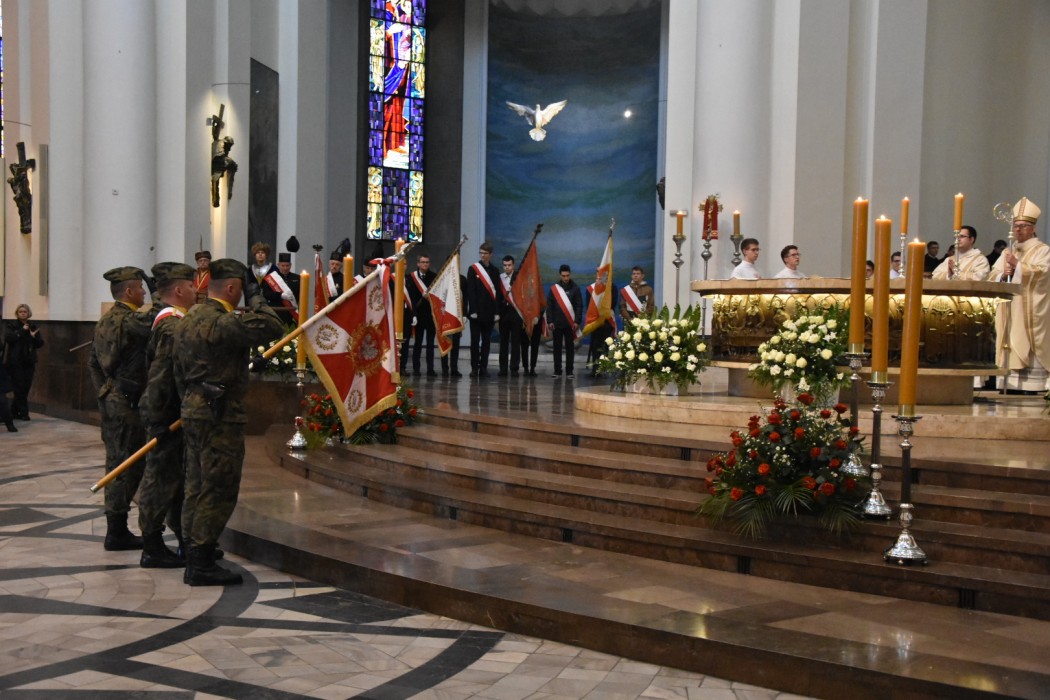 Kolejnym punktem uroczystości była msza święta w katowickiej Archikatedrze Chrystusa Króla, gdzie metropolita katowicki abp Wiktor Skworc odprawił mszę świętą w intencji Ojczyzny. Po zakończeniu nabożeństwa uczestnicy uroczystości przemaszerowali ulicami Katowic pod pomnik Wojciecha Korfantego, gdzie nastąpił moment kulminacyjny obchodów – odegranie hymnu państwowego, Apel Pamięci i złożenie kwiatów. W tym miejscu odbyła się również uroczysta defilada pocztów sztandarowych służb mundurowych oraz występ zespołu Pieśni i Tańca „Śląsk”.