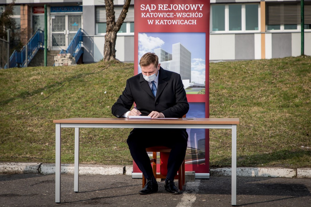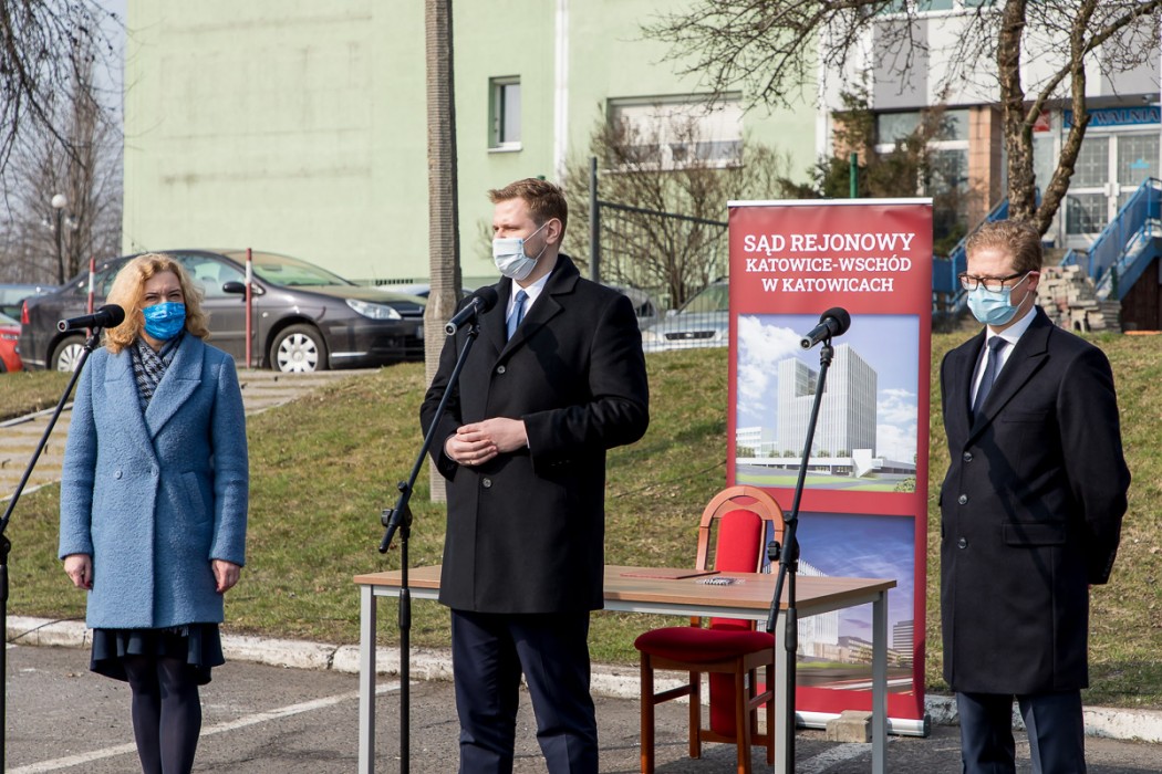 „Rozpoczynamy proces związany z budową nowego budynku dla Sądu Rejonowego Katowice-Wschód, jednego z największych sądów rejonowych w Polsce. To wyczekiwana inwestycja, chcemy, by wymiar sprawiedliwości miał godne i komfortowe warunki pracy, a mieszkańcy mogli korzystać z jego usług w jednym miejscu. W dobie pandemii inwestycje są ważne, bo napędzają gospodarkę i pozwalają zachować miejsca pracy” – mówił sekretarz stanu w Ministerstwie Sprawiedliwości, Michał Woś.