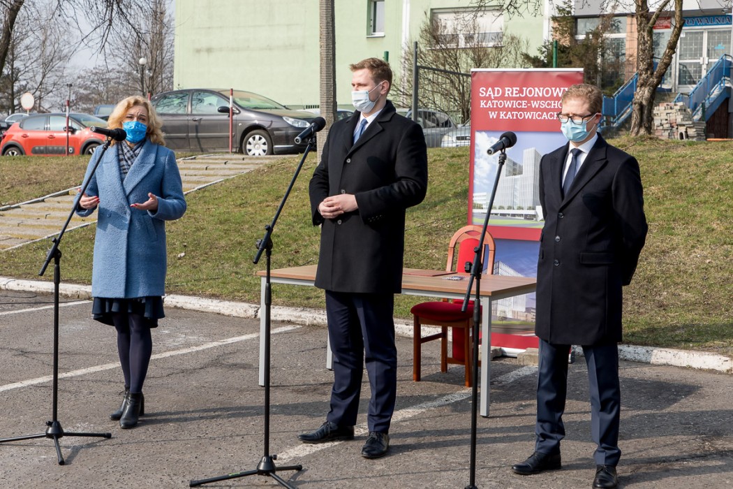 O szczegółach inwestycji mówili w trakcie konferencji prasowej sekretarz stanu w Ministerstwie Sprawiedliwości Michał Woś, członek Zarządu Województwa Śląskiego Beata Białowąs i prezes Sądu Rejonowego Katowice-Wschód, Michał Dmowski.