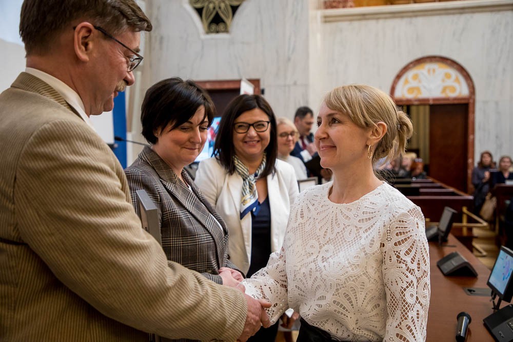 Dyplomy i wyróżnienia uhonorowanym nauczycielom wręczali radni Sejmiku: Maria Materla i Rafał Kandziora.