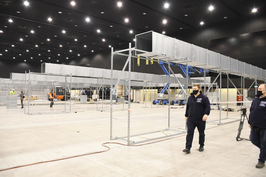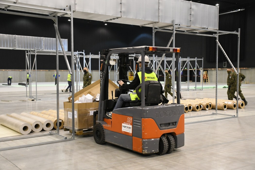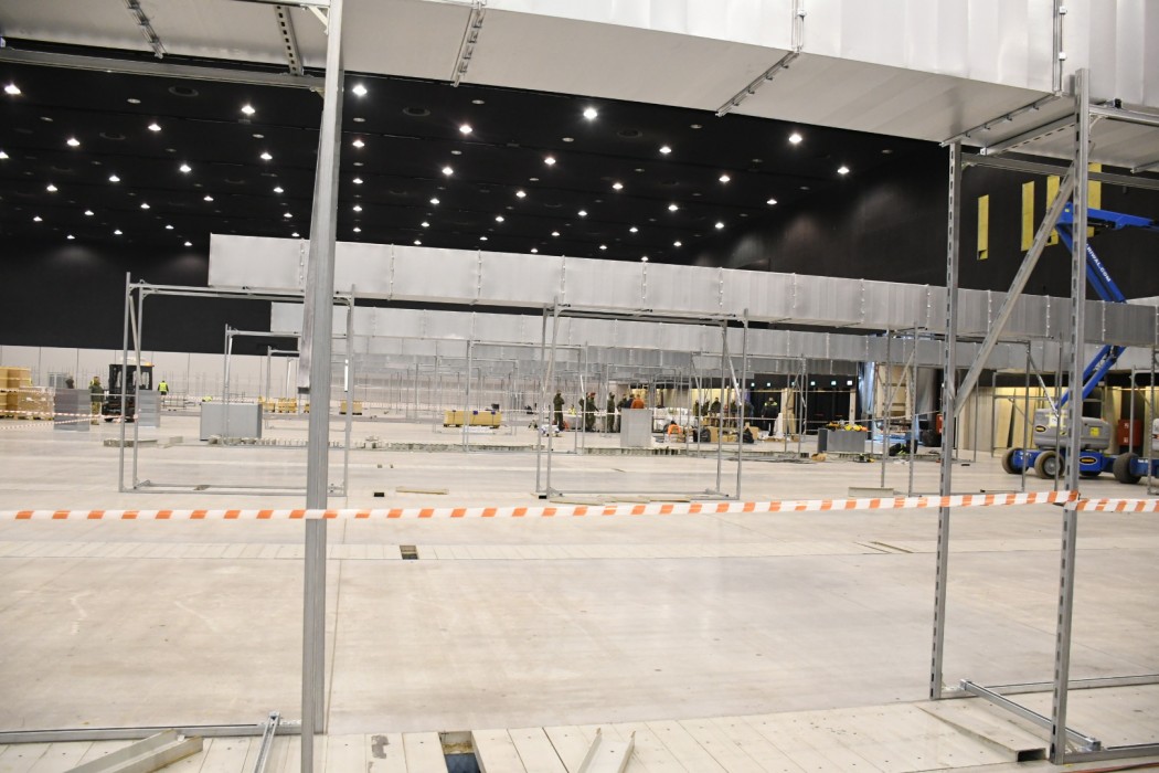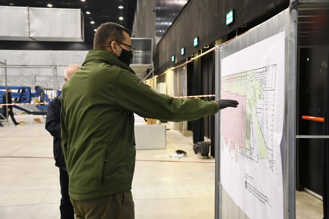Premier, marszałek i wojewoda na budowie tymczasowego szpitala