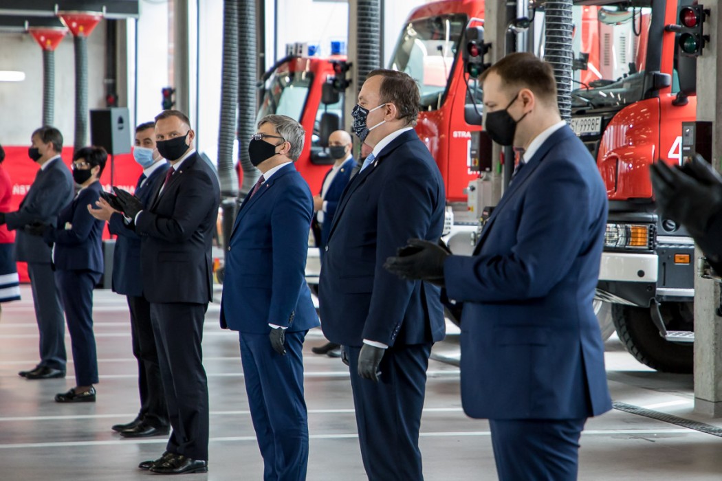 - Bytomscy strażacy mają w tej chwili bardzo dobre warunki do tego, aby przygotowywać się do służby, pełnić ją, a także odpocząć już po jej zakończeniu. Jednostka ma także zaplecze socjalne i sportowe, gdzie strażacy mogą szlifować swoją kondycję – akcentował prezydent Andrzej Duda.
