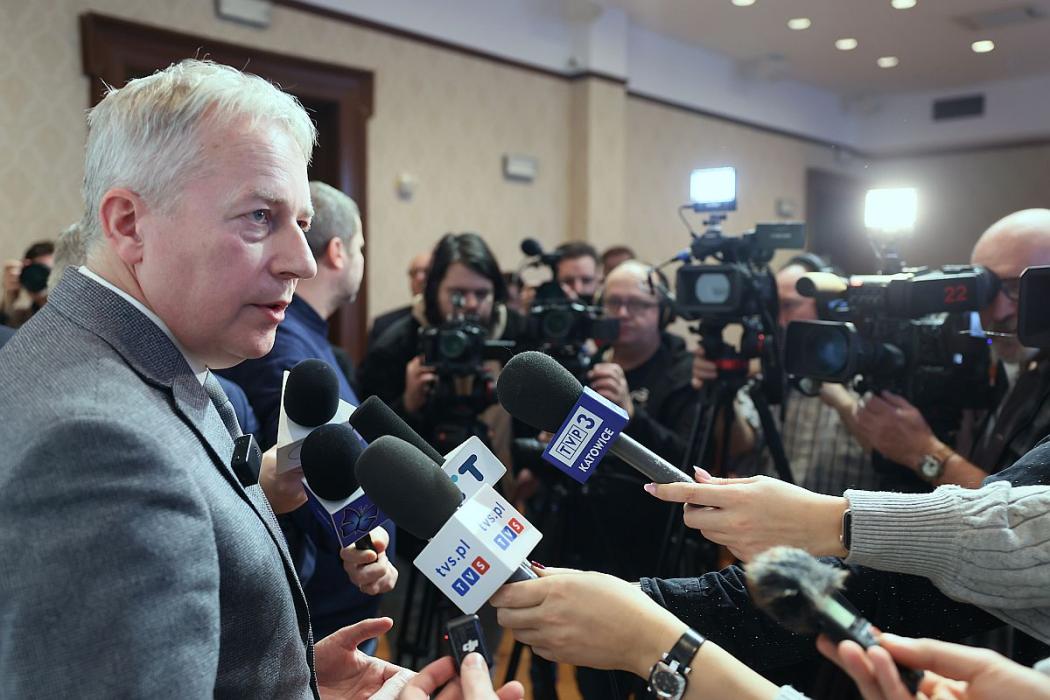 W briefing prasowy dotyczący rozpoczęcia procedury przejęci uczestniczyli: Marszałek Województwa Śląskiego Wojciecha Saługa i prezydenta Katowic Marcina Krupy