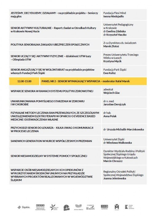 W trakcie konferencji, w ramach dwóch paneli dyskusyjnych: „Senior aktywny” oraz „Senior zależny” omawiane będą główne problemy, wyzwania oraz kierunki działań warunkujące budowanie odpowiedzialnej polityki senioralnej w regionie.