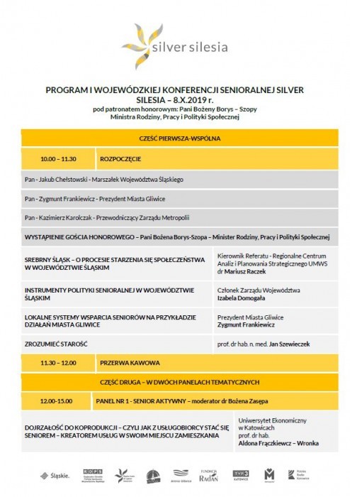 Udział w konferencji jest bezpłatny. Formularz zgłoszeniowy oraz program konferencji jest dostępny na stronie: www.silversilesia.pl