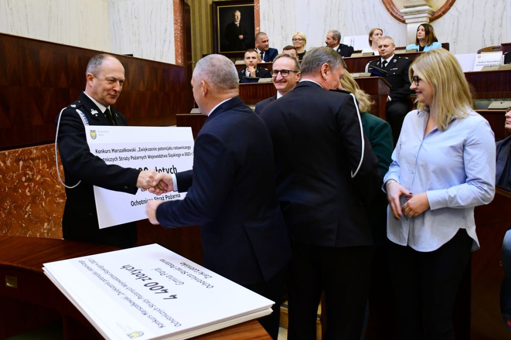 W tym roku na ten cel zostanie przeznaczonych 235 tys. zł. Środki trafią do 53 gmin z przeznaczeniem na zakup sprzętu strażackiego oraz środków ochrony indywidualnej. Symboliczne czeki wręczyli przedstawicielom gmin marszałek Jakub Chełstowski, radne Sejmiku Województwa Śląskiego Maria Materla i Marta Salwierak, członek Zarządu Województwa Śląskiego Grzegorz Boski i były starosta kłobucki Henryk Kiepura.