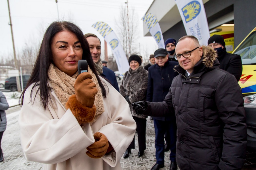 W uroczystym przekazaniu karetek, które odbywało się w Stacji Pogotowia Ratunkowego w Będzinie, uczestniczyli wicemarszałek Dariusz Starzycki, członek Zarządu Województwa Śląskiego Izabela Domogała, radni Sejmiku Województwa: Maria Materla, Jadwiga Baczyńska i parlamentarzyści z regionu.