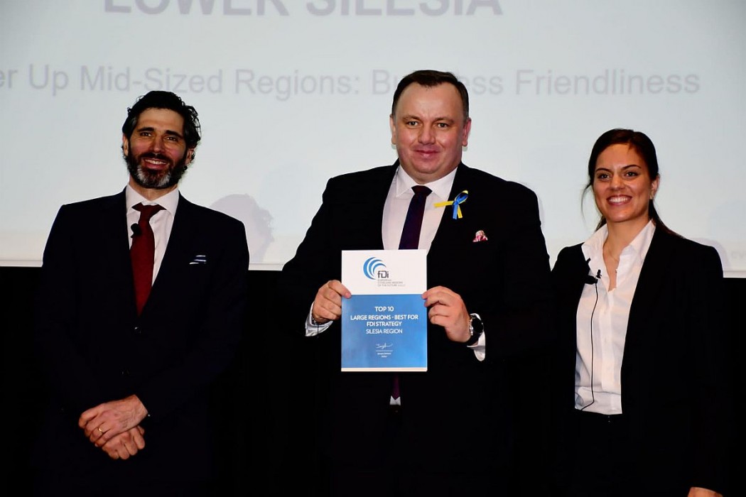 Na poziomie regionalnym zespół badawczy fDi ocenił 148 regionów europejskich, pogrupowanych w trzy kategorie wielkości — małe, średnie i duże. Województwo Śląskie znalazło się w prestiżowych towarzystwie największych i najbardziej atrakcyjnych ośrodków w Europie, zajmując wysokie miejsca wśród dużych regionów w kategorii: strategia przyciągania bezpośrednich inwestycji zagranicznych oraz w kategorii efektywność kosztowa.