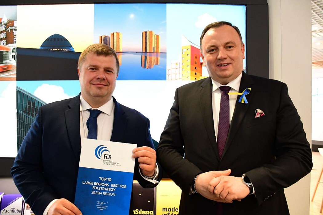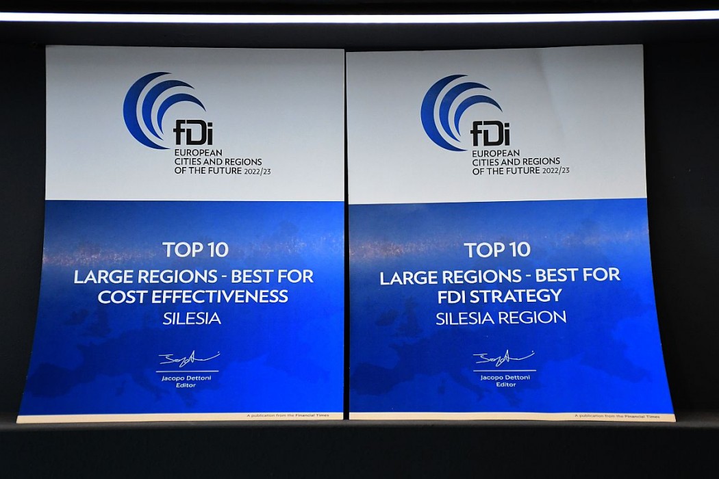 Magazyn fDi Intelligence, należący do grupy wydawniczej The Financial Times Ltd., opublikował 8. edycję raportu Europejskie Miasta i Regiony Przyszłości 2022/23 – dotyczącego najbardziej obiecujących miejsc inwestycyjnych w Europie. Badanie dokonuje się na podstawie ankiet wypełnianych przez miasta i regiony. Województwo Śląskie zajęło miejsca w pierwszej dziesiątce w kategorii: strategia przyciągania bezpośrednich inwestycji zagranicznych oraz w kategorii: efektywność kosztowa.