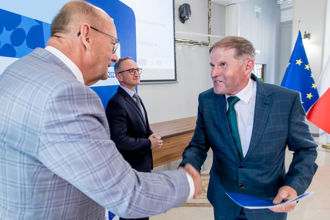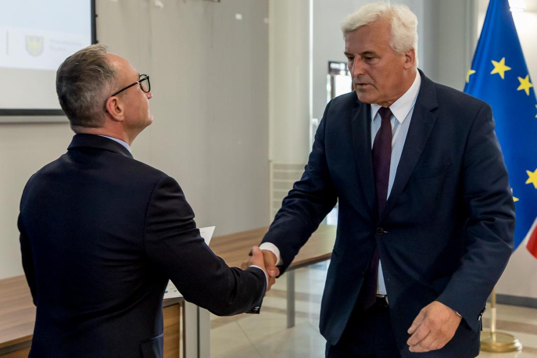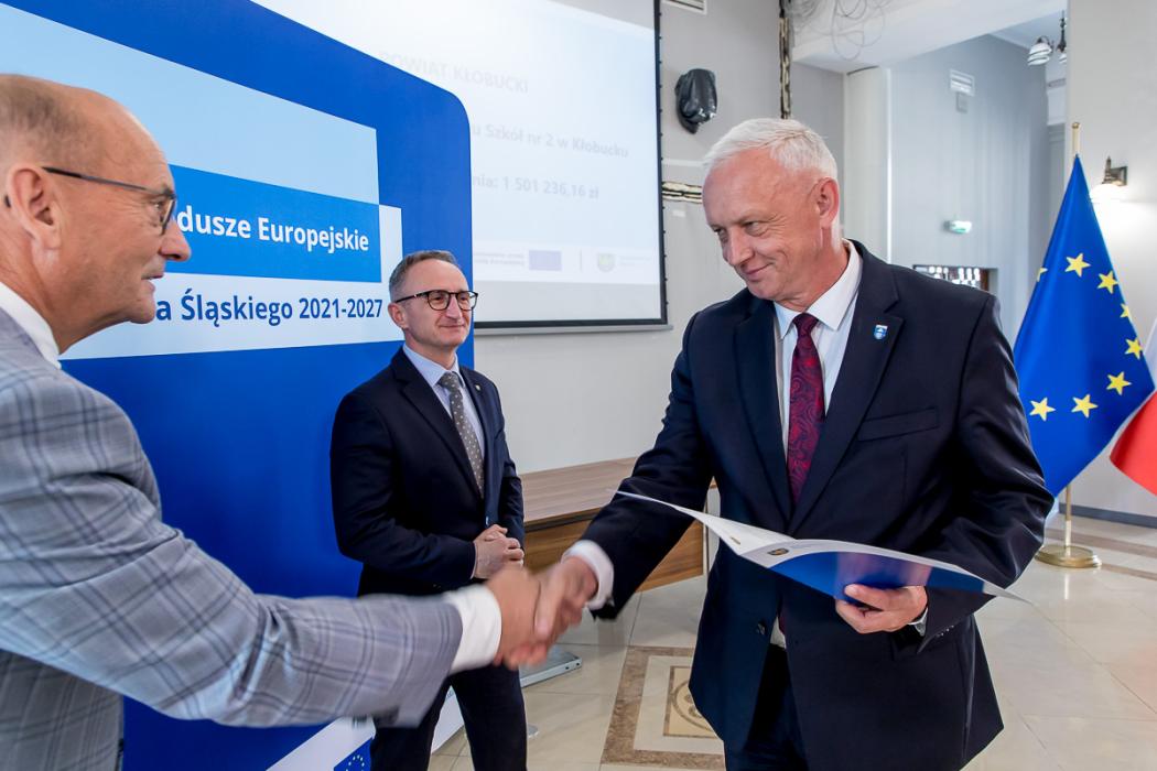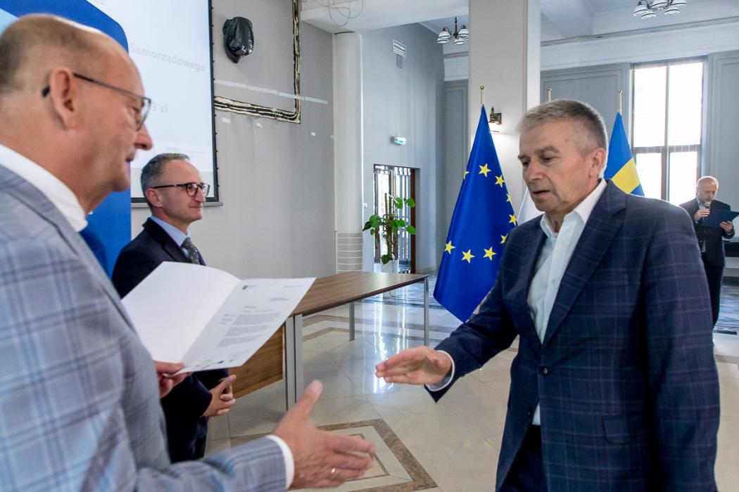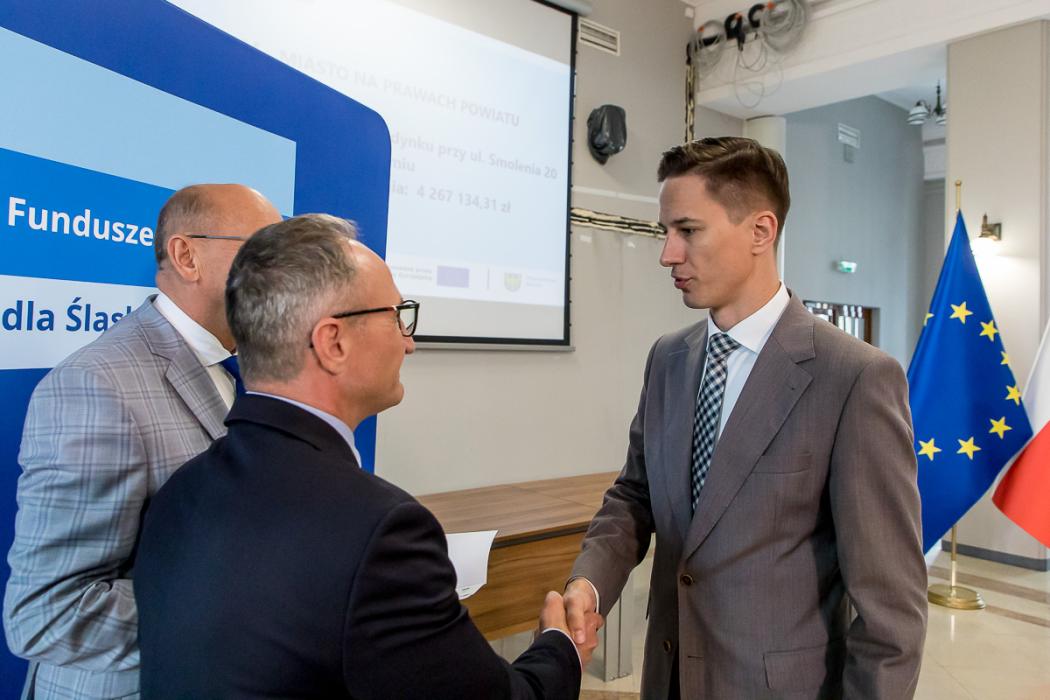 Listy gratulacyjne w naborach organizowanych w ramach Funduszy Europejskich dla Śląskiego wręczyli beneficjentom wicemarszałek Grzegorz Boski, a także Jacek Jarco, przewodniczący Sejmiku Województwa Śląskiego oraz radni Rafał Ryplewicz i Bronisław Karasek.