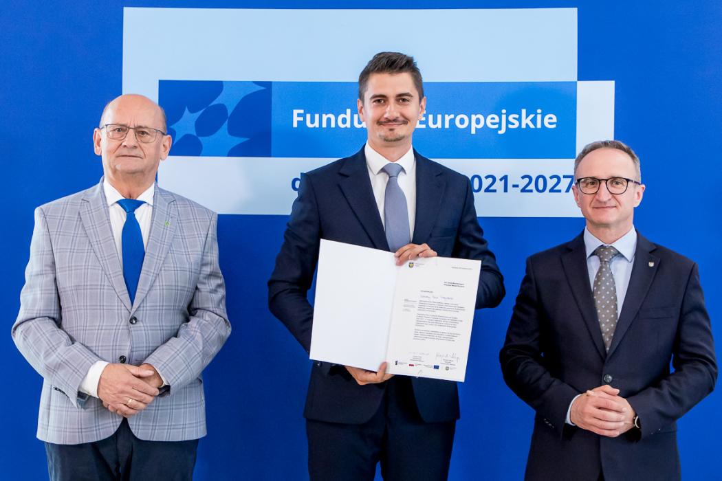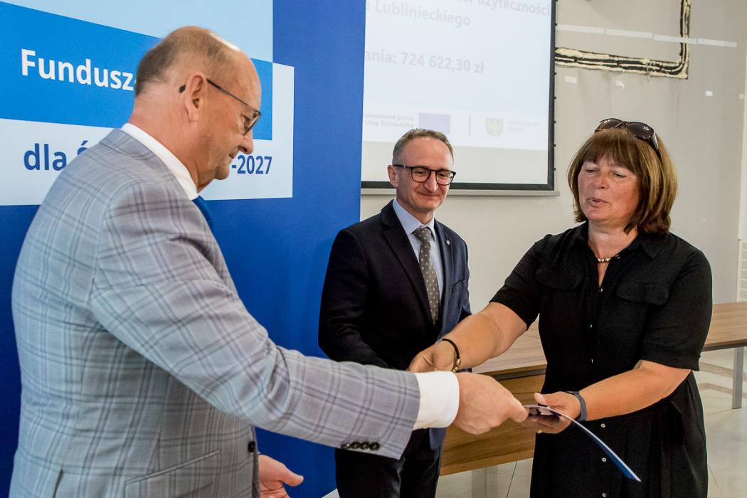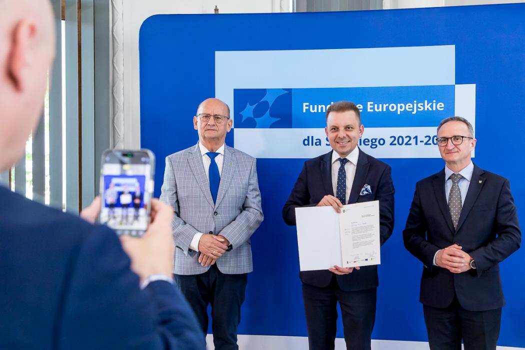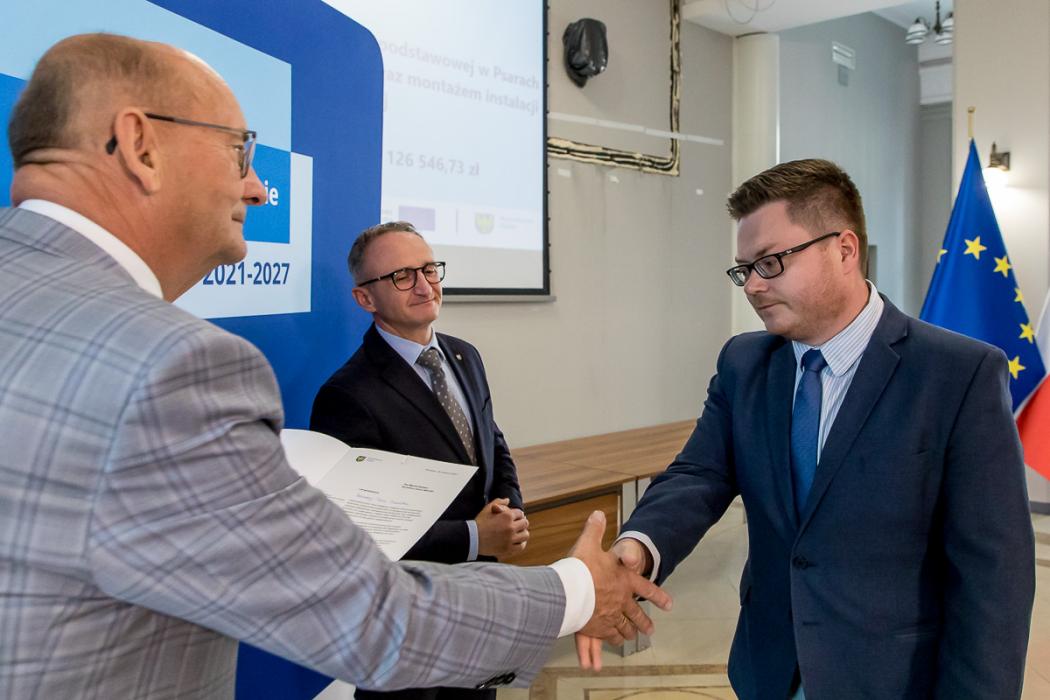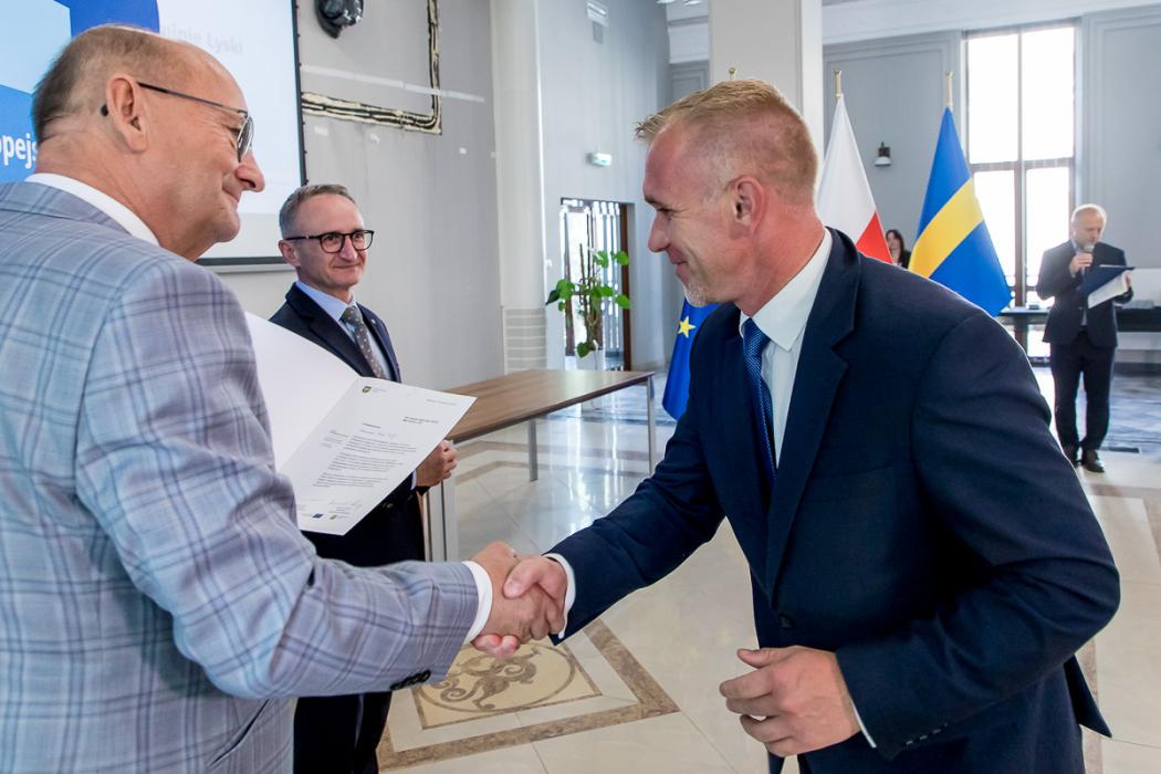 Listy gratulacyjne w naborach organizowanych w ramach Funduszy Europejskich dla Śląskiego wręczyli beneficjentom wicemarszałek Grzegorz Boski, a także Jacek Jarco, przewodniczący Sejmiku Województwa Śląskiego oraz radni Rafał Ryplewicz i Bronisław Karasek.