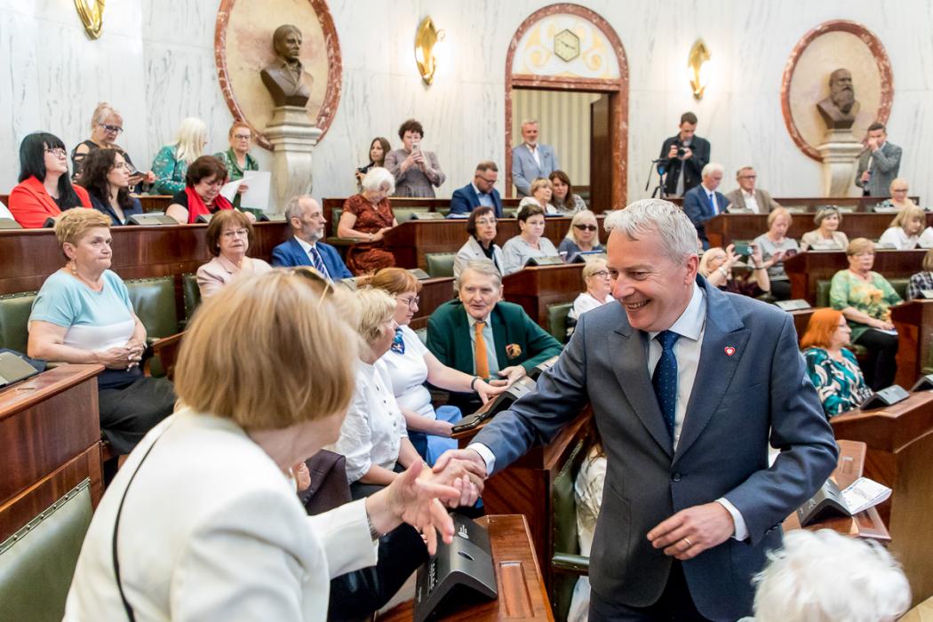 Marszałek Wojciech Saługa wręczył listy gratulacyjne najbardziej aktywnym seniorom z naszego regionu, którzy działają przy Uniwersytetach Trzeciego Wieku.