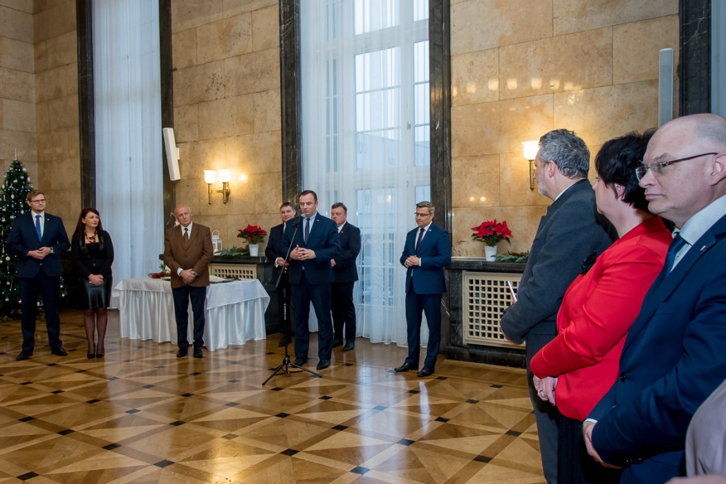 „Okres świąteczny to wyjątkowy czas, w którym wygasają wszystkie spory. Zachęcam wszystkich do współpracy, bo województwo śląskie jest wyjątkowe, a przed nami w najbliższym czasie dużo wyzwań i dla jego dobra warto mówić wspólnym głosem” – podkreślał marszałek Jakub Chełstowski i złożył zebranym świąteczne życzenia w imieniu Zarządu Województwa Śląskiego.