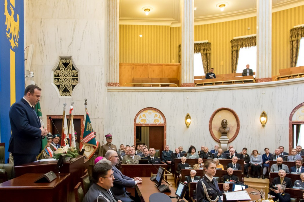 W trakcie uroczystości przedstawiciele środowisk kombatanckich wyróżnili marszałka Jakuba Chełstowskiego i przewodniczącego Sejmiku Jana Kawuloka Kombatancką Odznaką Jubileuszową „Polska Niepodległa 1918-2018”.