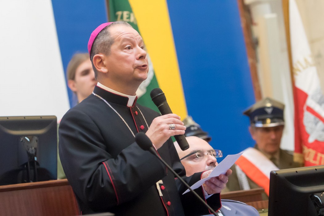 Życzenia zebranym złożyli również przedstawiciele duchowieństwa: biskup pomocniczy archidiecezji katowickiej Grzegorz Olszowski i zwierzchnik diecezji katowickiej Kościoła Ewangelicko-Augsburskiego biskup Marian Niemiec.