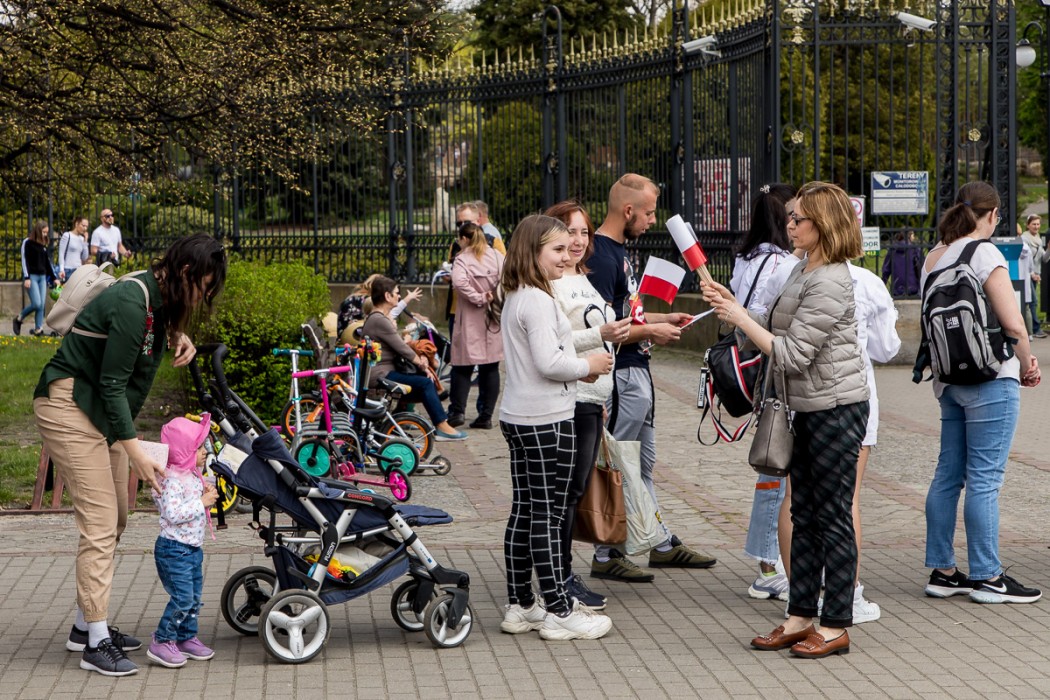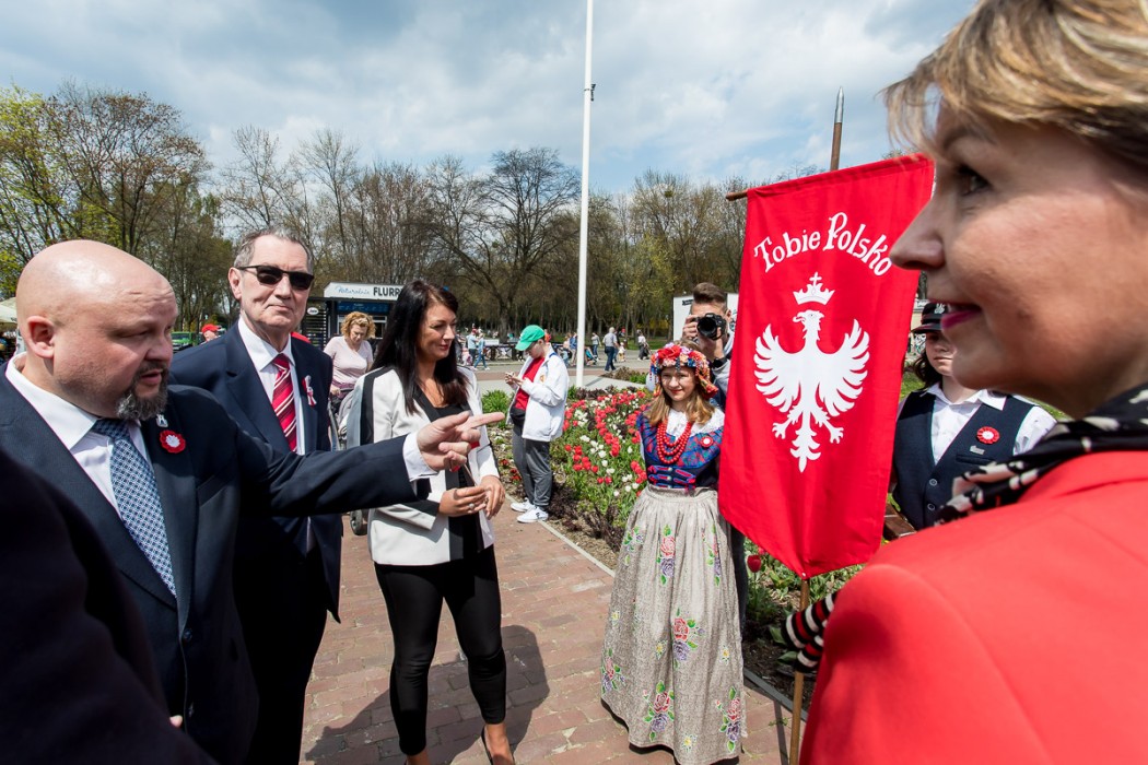 W trakcie wydarzenia rozdawano flagi Polski. Zespół Pieśni i Tańca „Śląsk” wykonał hymn państwowy i „Rotę”.