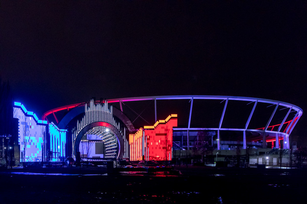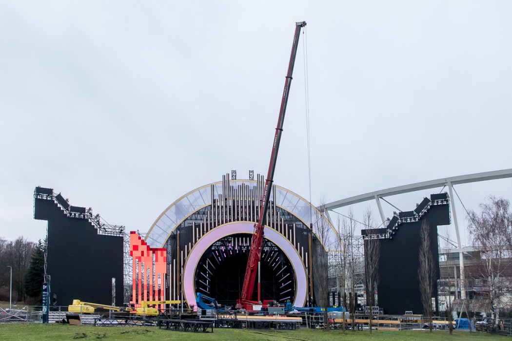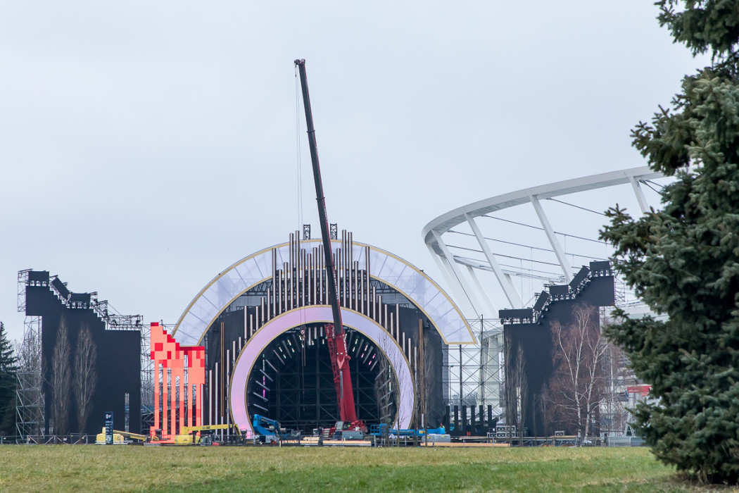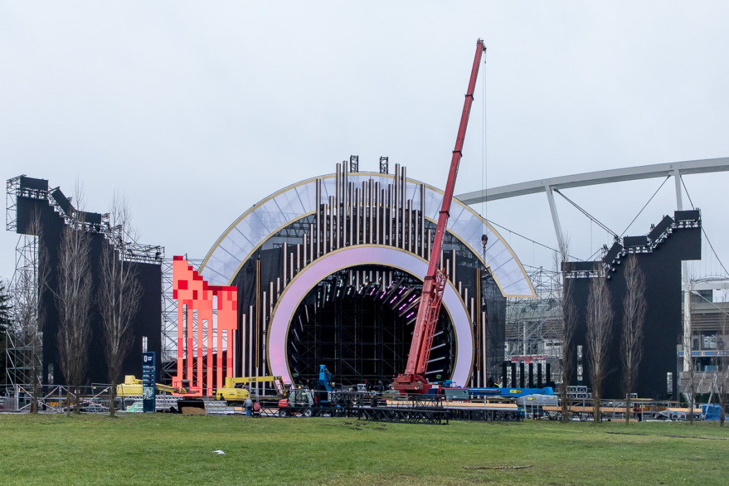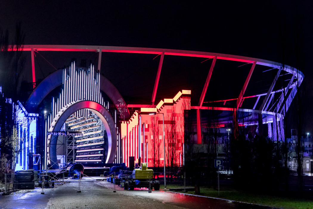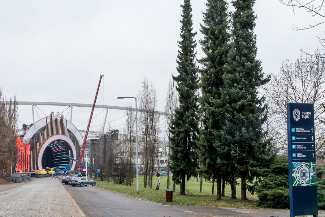 Sylwestrowa Moc Przebojów - budowa sceny przed Stadionem Śląskim