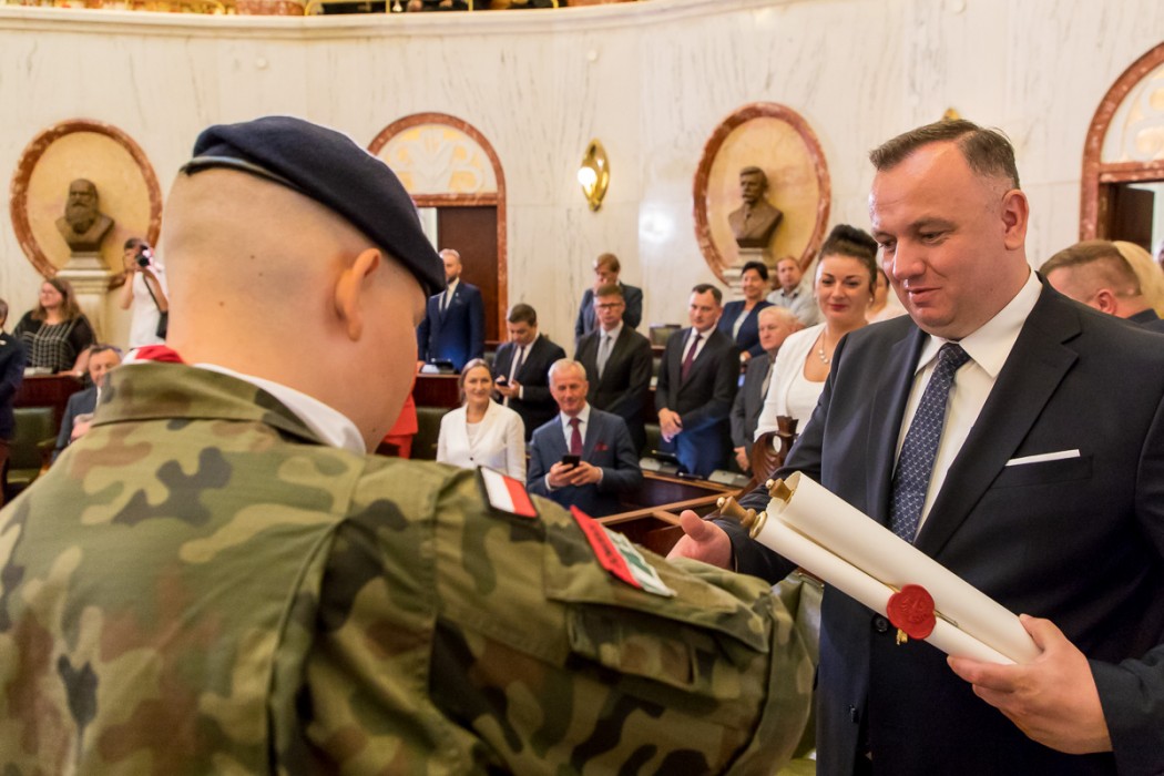 Podczas obrad, Włodzimierz Czechowski reprezentujący Związek Kombatantów RP przekazał na ręce marszałka historyczny sztandar Związku Powstańców Śląskich Grupy Panewniki. Sztandar trafi do Muzeum Powstań Śląskich w Świętochłowicach.