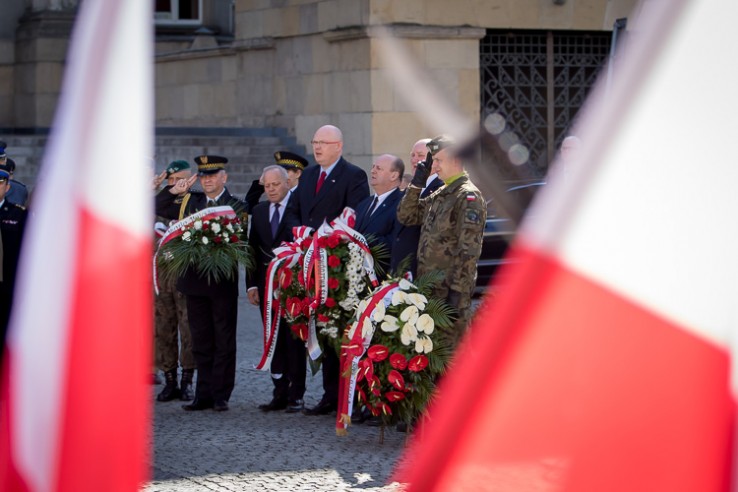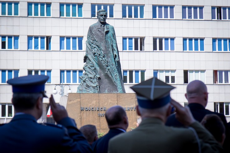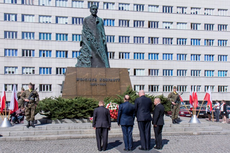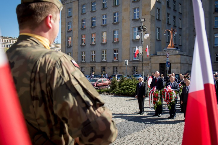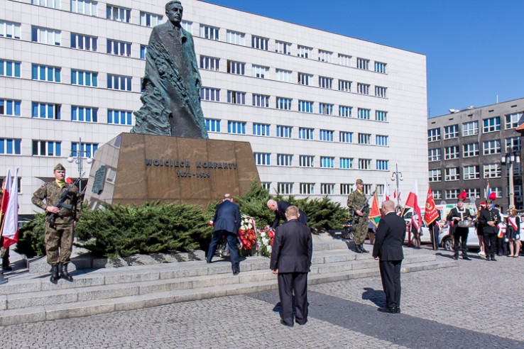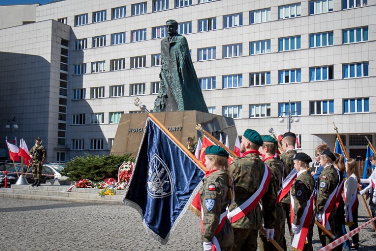 Z okazji 145 rocznicy urodzin Wojciecha Korfantego wicemarszałek Michał Gramatyka złożył kwiaty pod jego pomnikiem na placu Sejmu Śląskiego