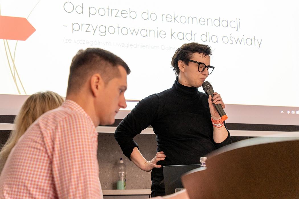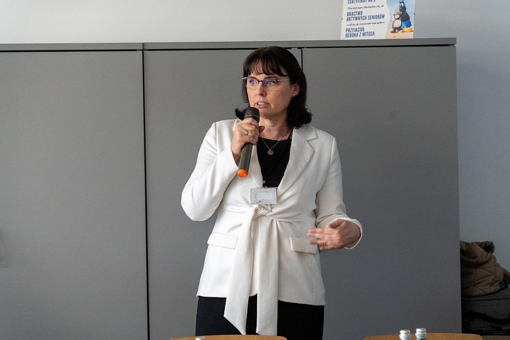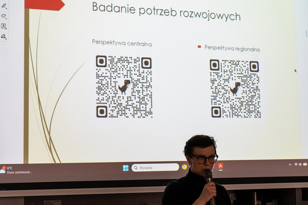 Pierwszą prelekcję wygłosiła dr Katarzyna Pająk‑Załęska, badaczka systemu edukacji i ekspertka WZK w województwie dolnośląskim. Jej wystąpienie dotyczyło kierunków rozwoju kompetencji kadry nauczycielskiej w odpowiedzi na wyzwania współczesnej szkoły.