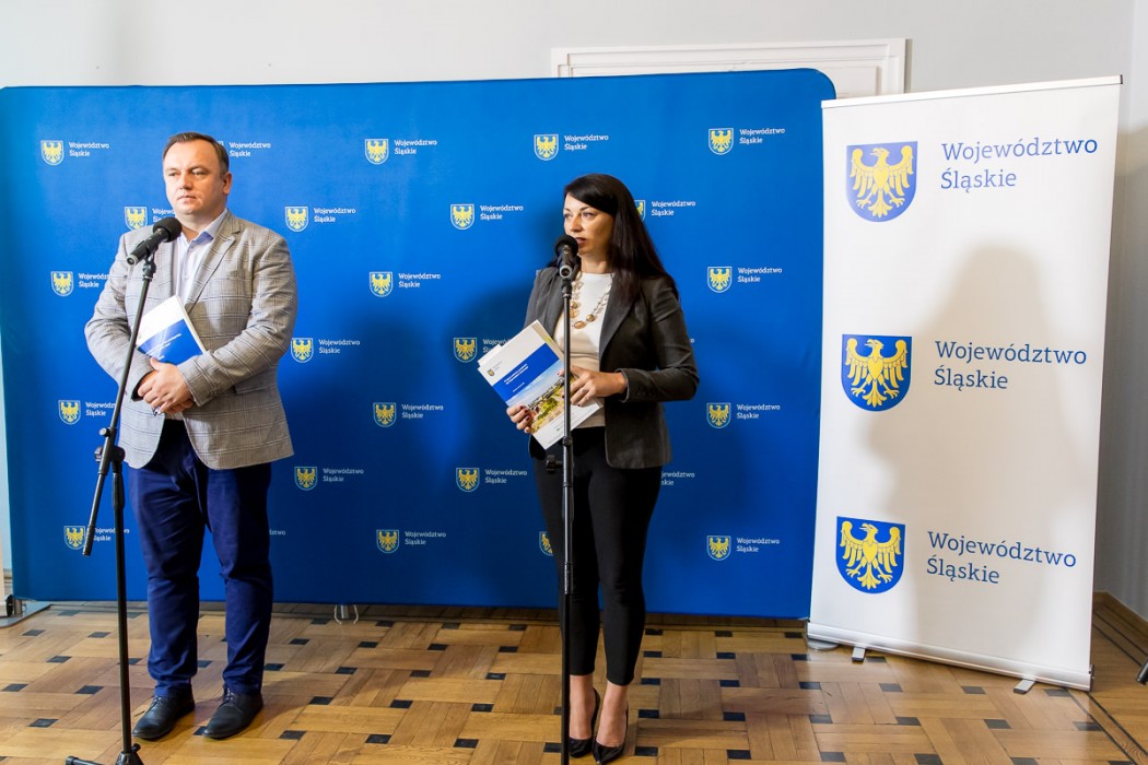 W konferencji prasowej uczestniczył marszałek Jakub Chełstowski oraz Izabela Domogała, członek Zarządu Województwa Śląskiego.