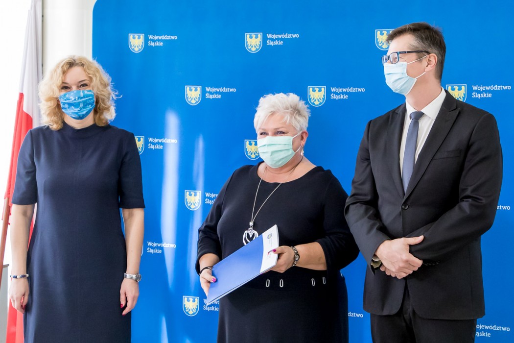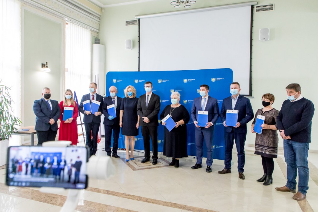 Umowy na realizację inwestycji wręczyli przedstawicielom gmin Beata Białowąs, członek Zarządu Województwa Śląskiego i Przemysław Wydra, radny Sejmiku.