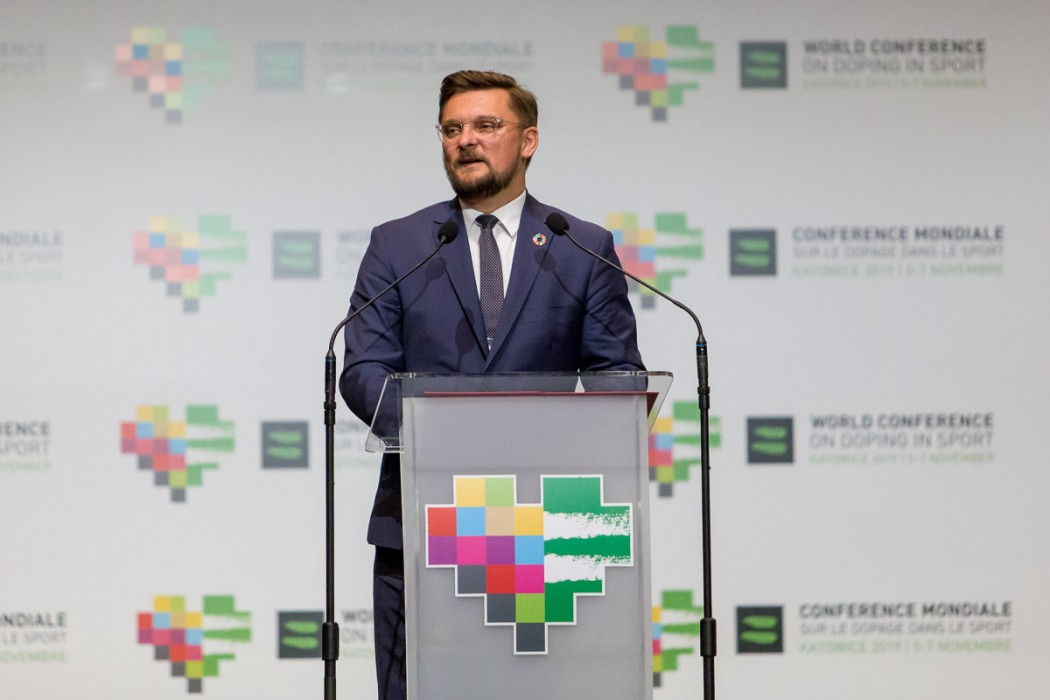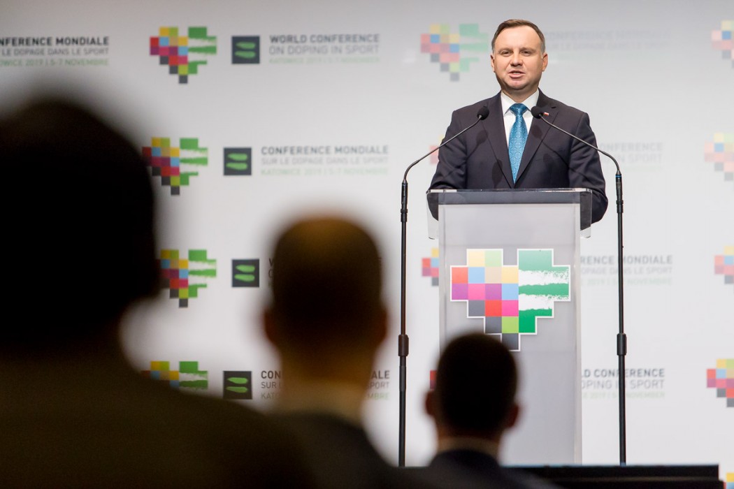 „Dziękuję władzom Światowej Agencji Antydopingowej za to, że tak ważna konferencja odbywa się w Polsce, w czasie, który jest dla nas bardzo ważny. Obchodzimy stulecie odzyskania niepodległości i odrodzenia polskiego sportu, z naszym narodowym godłem i orłem na piersi, a tu, w województwie śląskim świętujemy stulecie powrotu tych ziem do Ojczyzny. To dla nas miejsce szczególne, od stuleci symbol ciężkiej pracy i wielkiego plony dla całego kraju, w którym mieszkają ludzie pracowici i uczciwi. To symboliczne, że konferencja dotycząca uczciwego sportu odbywa się właśnie tutaj. Walka z dopingiem to nie tylko walka o uczciwość w sporcie, ale również o życie i zdrowie samych sportowców” – podkreślał prezydent RP Andrzej Duda.