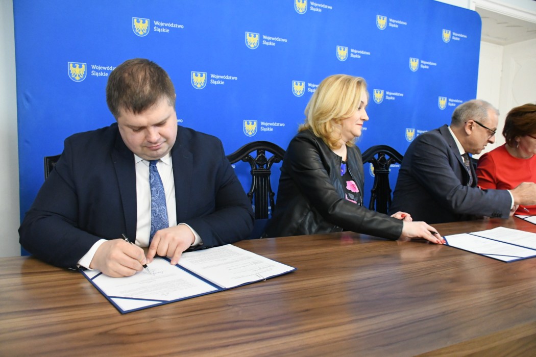 Podpisy pod umowami złożyli: Beata Białowąs - członek zarządu Województwa Śląskiego oraz Wojciech Kałuża, wicemarszałek województwa.