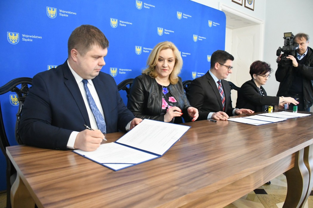 Podpisy pod umowami złożyli: Beata Białowąs - członek zarządu Województwa Śląskiego oraz Wojciech Kałuża, wicemarszałek województwa.