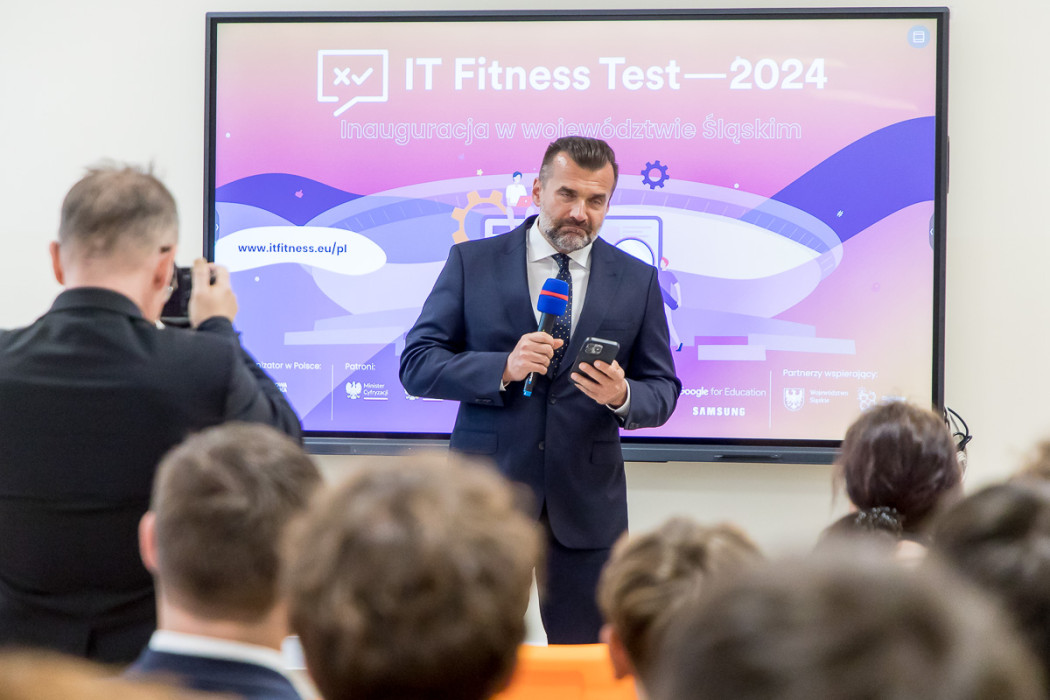 W całym regionie rusza IT Fitness Test 2024 - ogólnopolski sprawdzian kompetencji cyfrowych. W konferencji i lekcji pokazowej zapowiadającej wydarzenie uczestniczył członek Zarządu Województwa Śląskiego, Rafał Adamczyk. Porozumienie o współpracy pomiędzy Urzędem Marszałkowskim Województwa Śląskiego, a organizującym test Związkiem Cyfrowa Polska zostało przekazane w katowickim Technikum Lotniczym.
