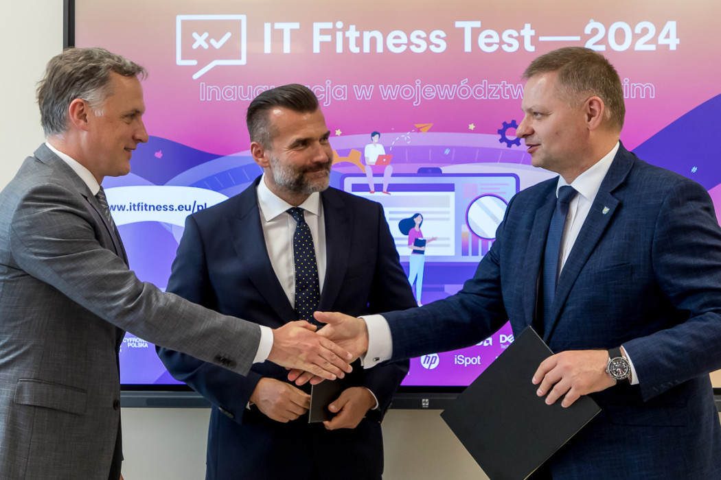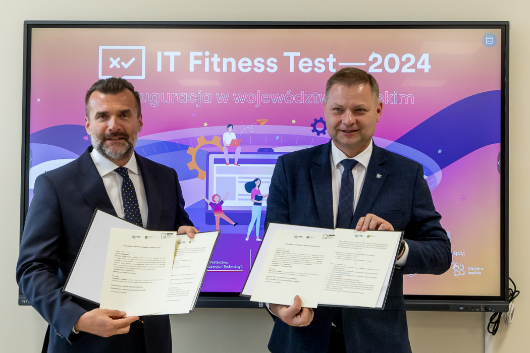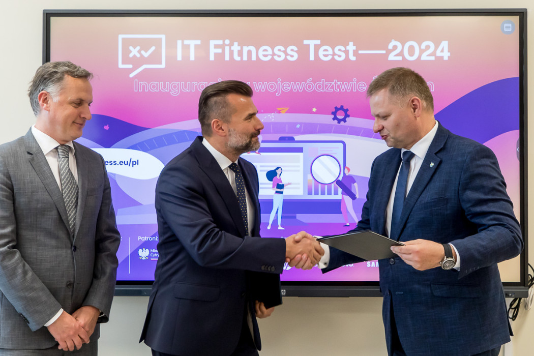 W całym regionie rusza IT Fitness Test 2024 - ogólnopolski sprawdzian kompetencji cyfrowych. W konferencji i lekcji pokazowej zapowiadającej wydarzenie uczestniczył członek Zarządu Województwa Śląskiego, Rafał Adamczyk. Porozumienie o współpracy pomiędzy Urzędem Marszałkowskim Województwa Śląskiego, a organizującym test Związkiem Cyfrowa Polska zostało przekazane w katowickim Technikum Lotniczym.