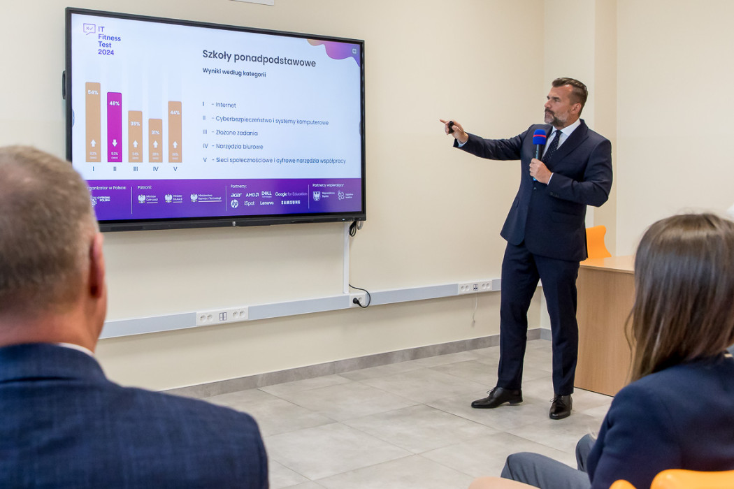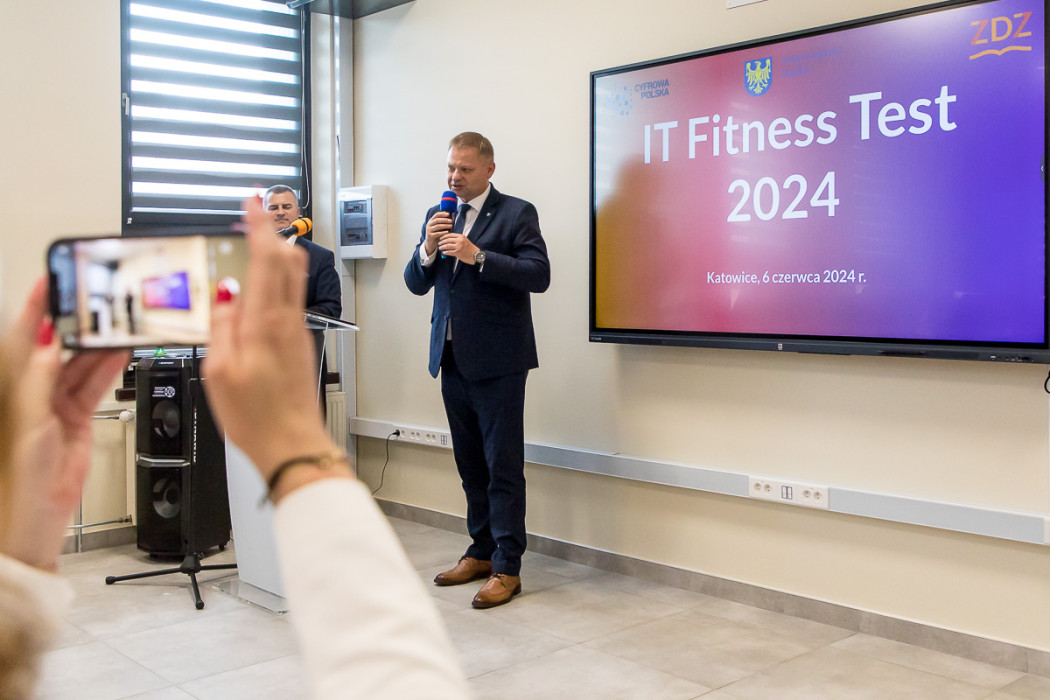 W całym regionie rusza IT Fitness Test 2024 - ogólnopolski sprawdzian kompetencji cyfrowych. W konferencji i lekcji pokazowej zapowiadającej wydarzenie uczestniczył członek Zarządu Województwa Śląskiego, Rafał Adamczyk. Porozumienie o współpracy pomiędzy Urzędem Marszałkowskim Województwa Śląskiego, a organizującym test Związkiem Cyfrowa Polska zostało przekazane w katowickim Technikum Lotniczym.