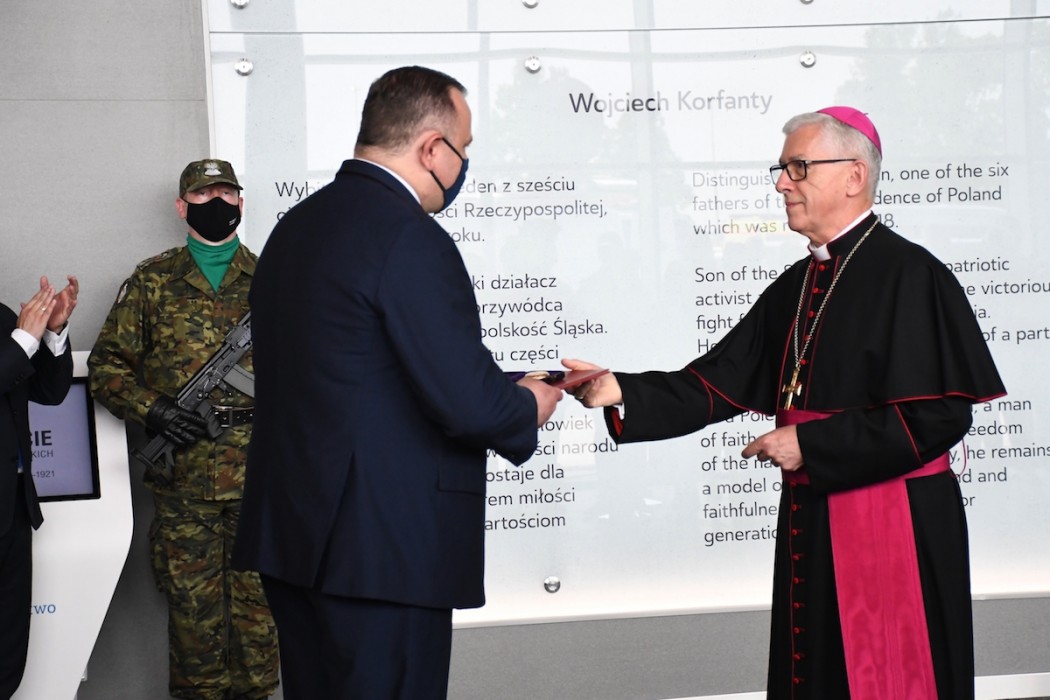 Uroczystość jest jednym z elementów trwających w regionie i kraju obchodów 100. Rocznicy Powstań Śląskich i przyłączenia części Górnego Śląska do odradzającej się Polski. Wniosek dotyczący nadania portowi lotniczemu Katowice w Pyrzowicach imienia Wojciecha Korfantego radni Sejmiku Województwa złożyli w 2020 roku. Tablicę poświęcili metropolita katowicki abp Wiktor Skworc i biskup diecezji sosnowieckiej Grzegorz Kaszak. Metropolita katowicki podarował na rzecz lotniska zegarek, który należał do Wojciecha Korfantego.