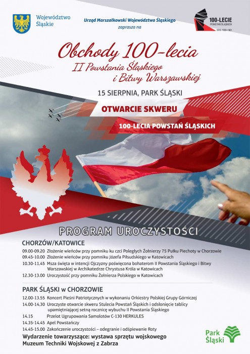 Od 15 do 19 sierpnia w regionie zaplanowane są uroczystości upamiętniające wybuch II Powstania Śląskiego. Obchody będą połączone z setną rocznicą Bitwy Warszawskiej. Weźmie w nich udział marszałek województwa, Jakub Chełstowski, przedstawiciele zarządu województwa, prezydenci miast, reprezentanci Górnośląsko-Zagłębiowskiej Metropolii oraz dowódcy, szefowie i komendanci służb mundurowych.