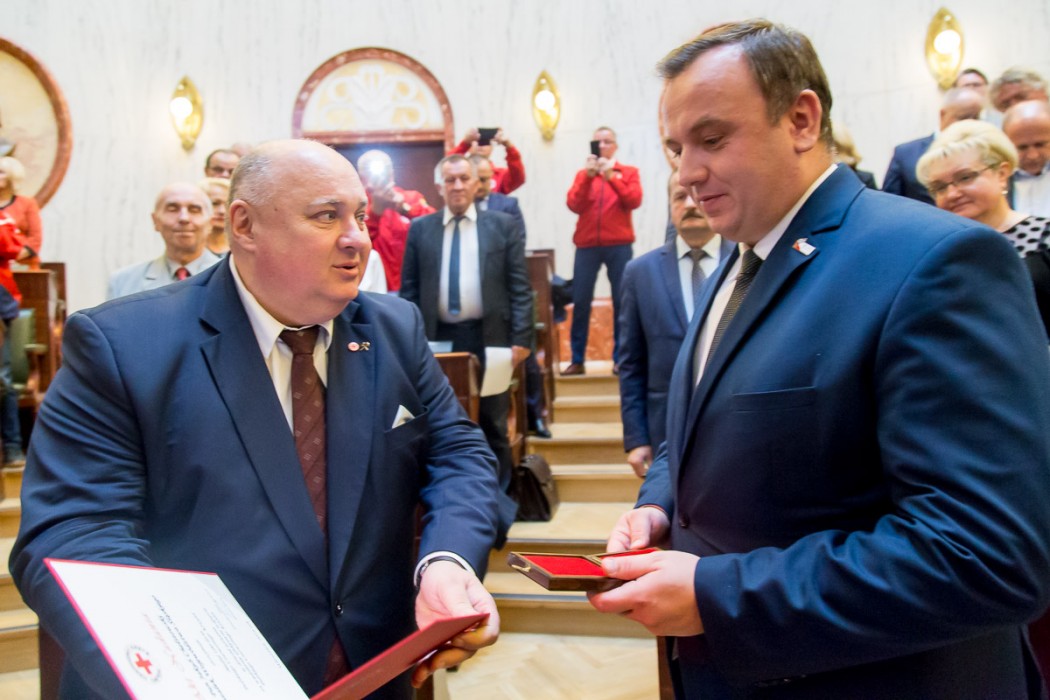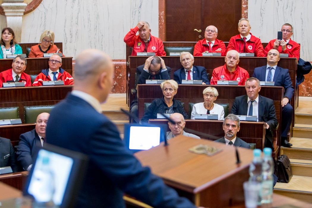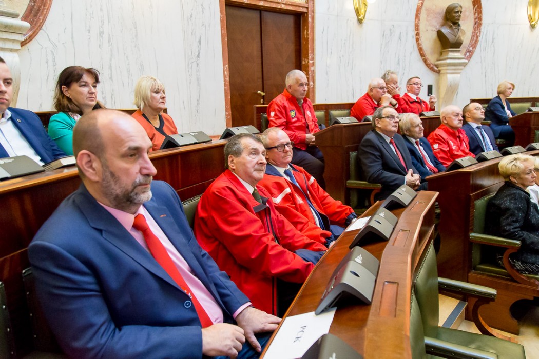 „Pragnąc uczcić jubileusz Stulecia Polskiego Czerwonego Krzyża, doceniając jednocześnie wkład pracy w upowszechnianie szlachetnej misji niesienia pomocy na wiele sposobów, tak w kraju jak i zagranicą Sejmik Województwa Śląskiego postanowił wyróżnić zasłużonych działaczy Złotymi i Srebrnymi odznakami za zasługi dla Województwa Śląskiego” – powiedział Jan Kawulok Przewodniczący Sejmiku Śląskiego.