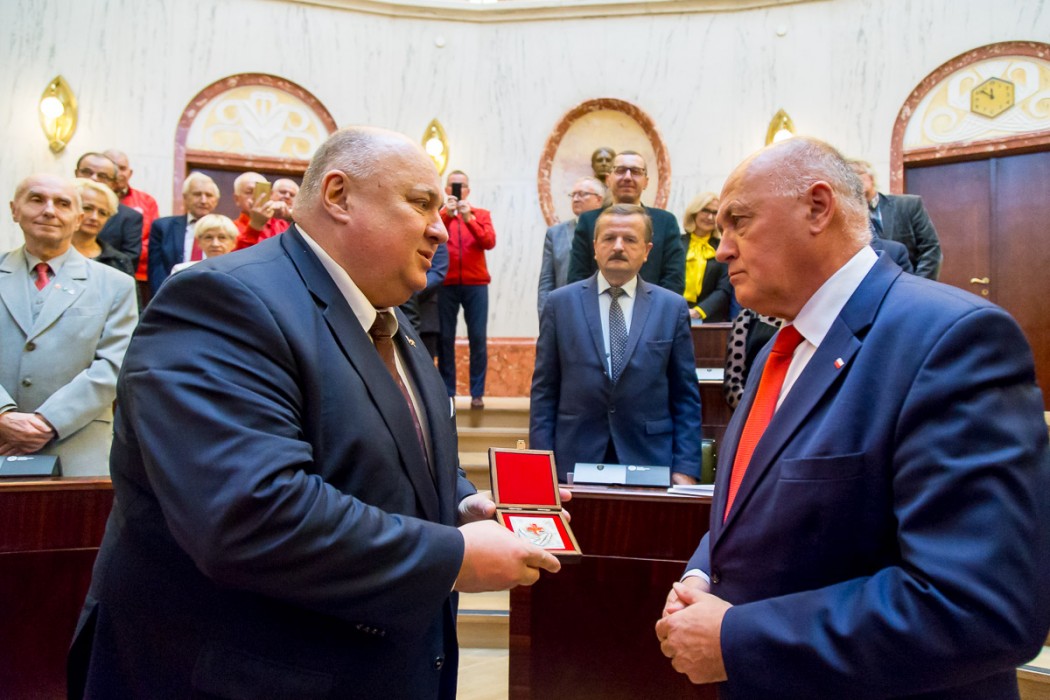 „Pragnąc uczcić jubileusz Stulecia Polskiego Czerwonego Krzyża, doceniając jednocześnie wkład pracy w upowszechnianie szlachetnej misji niesienia pomocy na wiele sposobów, tak w kraju jak i zagranicą Sejmik Województwa Śląskiego postanowił wyróżnić zasłużonych działaczy Złotymi i Srebrnymi odznakami za zasługi dla Województwa Śląskiego” – powiedział Jan Kawulok Przewodniczący Sejmiku Śląskiego.