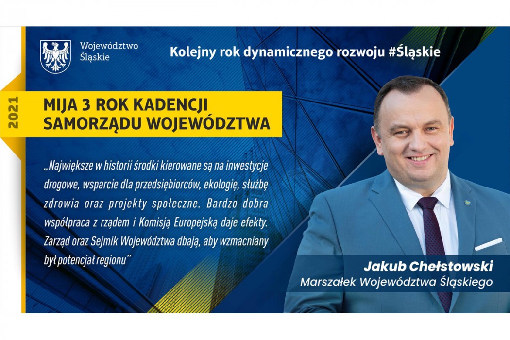Największym wyzwaniem dla regionu na najbliższe lata będzie realizacja strategii Zielone Śląskie 2030. Przypomnę, że ta uchwała została jednogłośnie przyjęta przez radnych Sejmiku województwa w październiku ubiegłego roku. Jednym z kluczowych wyzwań dla polityki rozwoju województwa jest transformacja gospodarcza. Zależy nam na podniesieniu konkurencyjności struktury gospodarczej regionu. Celem jest zwiększanie udziału w krajowym PKB. Stawiamy na biznes, naukę i edukację, rozwój sektora publicznego i obywatelskiego. Chcemy zapobiec odpływowi z województwa kapitału intelektualnego i zachęcać do tworzenia innowacyjnych startupów, zapraszać inwestorów do lokowania kapitału właśnie tutaj. Konieczne jest wykorzystanie potencjału naukowego, akademickiego i badawczo-rozwojowego regionu dla przekształcania gospodarki regionu z obecnego kształtu w kierunku gospodarki opartej na wiedzy. Chcemy nadać nowy impuls gospodarce i stać się jednym z liderów transformacji. W 2021 roku ramach Regionalnego Programu Operacyjnego wybraliśmy do dofinansowania ponad 1000 projektów. Podpisaliśmy umowy na dofinansowanie na kwotę 1,6 miliarda złotych. Środki wygospodarowane na działania związane z łagodzeniem skutków pandemii w ramach Regionalnego Programu Operacyjnego to niemal 720 milionów złotych. Co ważne, pandemia nie wstrzymała wielu kluczowych dla województwa zadań. W latach 2018-2021 na realizację inwestycji drogowych w regionie przeznaczyliśmy półtora miliarda złotych.