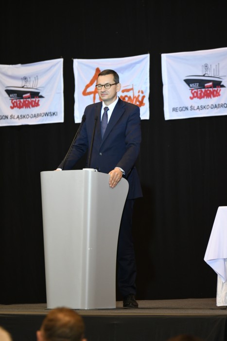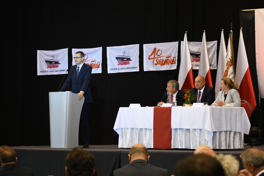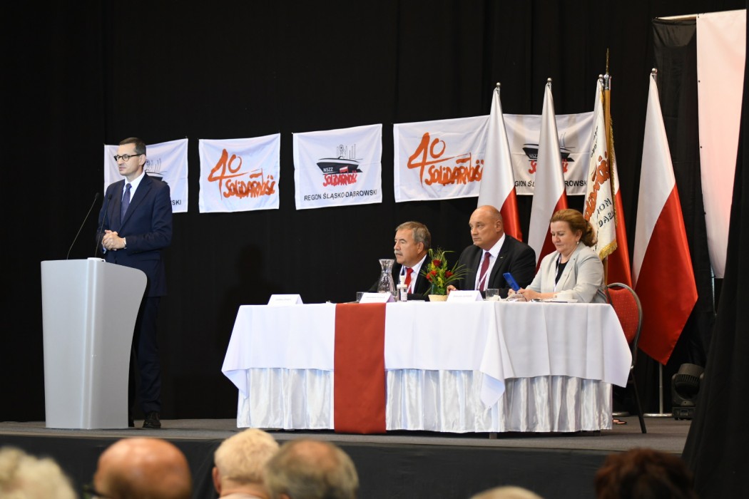 - „Solidarność” to coś więcej niż hasło, coś więcej niż związek zawodowy. „Solidarność” to drugie imię Polski, wielki narodowy ruch niepodległościowy. Posłanie do ludzi pracy Europy Wschodniej były ogromną wartością, które jednocześnie kłuła w oczy komunistyczne władze. Idea „Solidarności” była kroplą, który drążyła skałę zbrodniczego systemu, jakim był komunizm, by ostatecznie go skruszyć. Nie byłoby to jednak możliwe gdyby nie osoba Papieża Jana Pawła II, który był jednym z ojców „Solidarności”. Jej wartości, gdzie godność i wolność są dobrami najwyższymi, powinny wytyczać politykę każdego rządu – zaznaczył w swoim wystąpieniu premier RP, Mateusz Morawiecki, składając jednocześnie hołd śląskiemu działaczowi „Solidarności Walczącej” Sławomirowi Bugajskiemu. Podziękował także wszystkim bohaterom wydarzeń sprzed 40 lat. – Bo tych podziękowań przez ten czas było zdecydowanie za mało – podkreślił premier RP.
